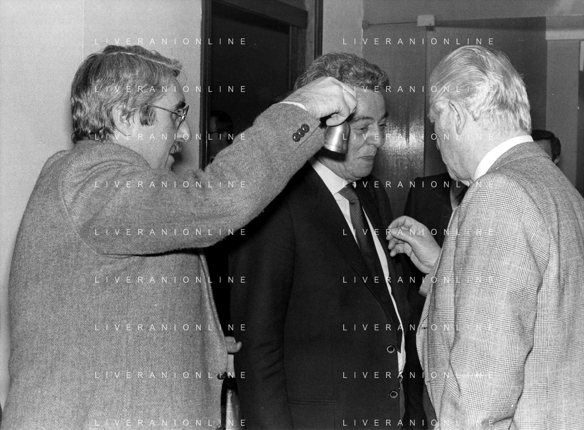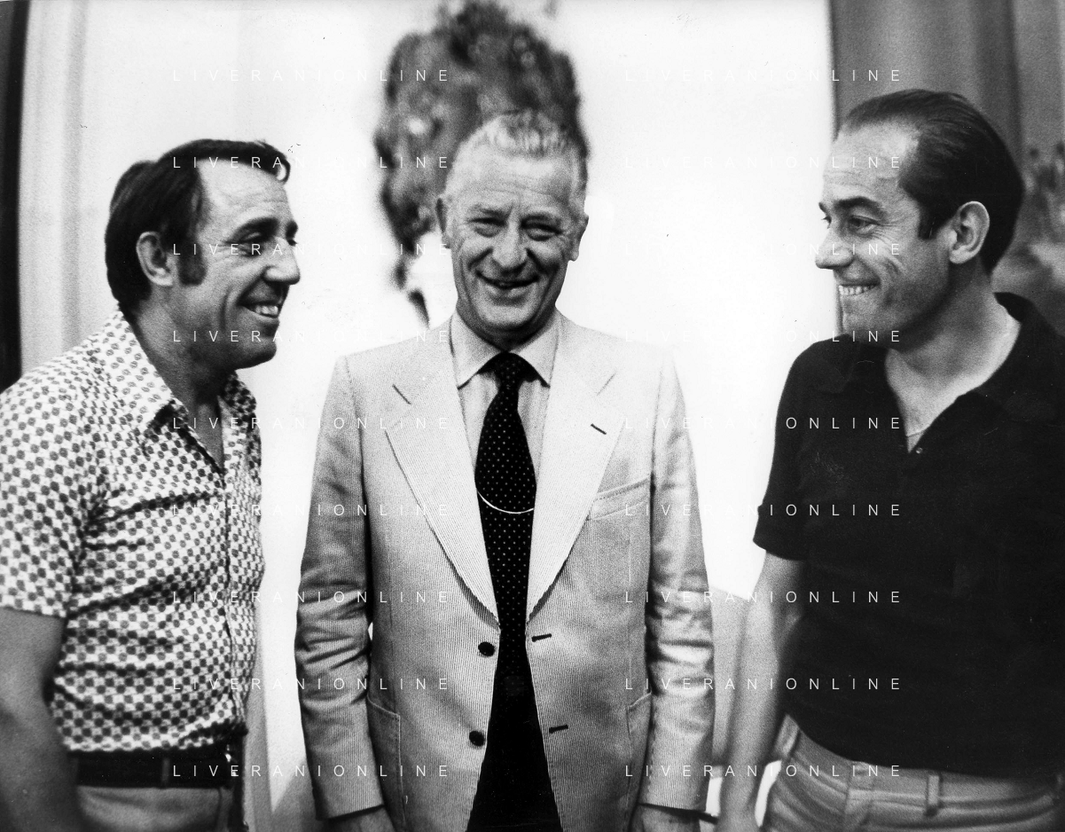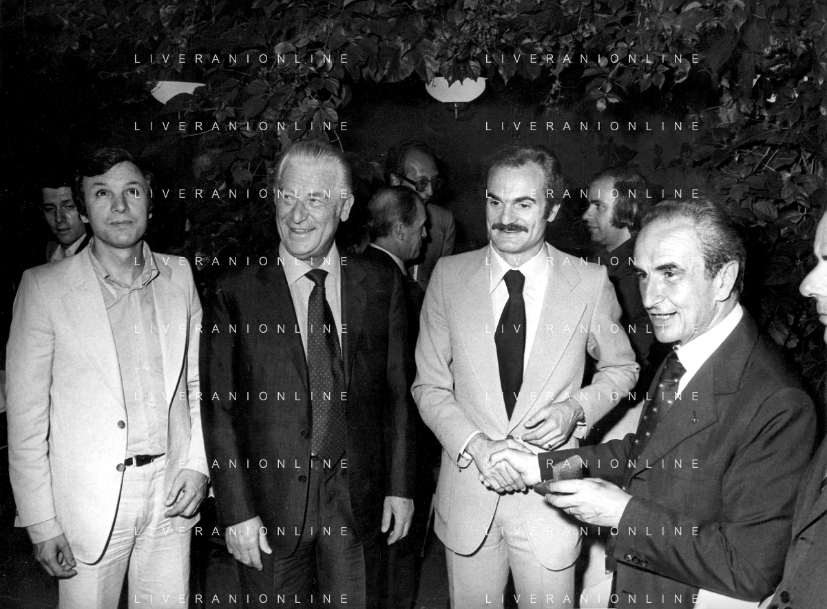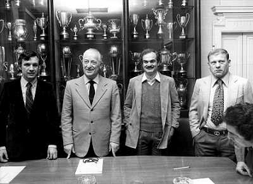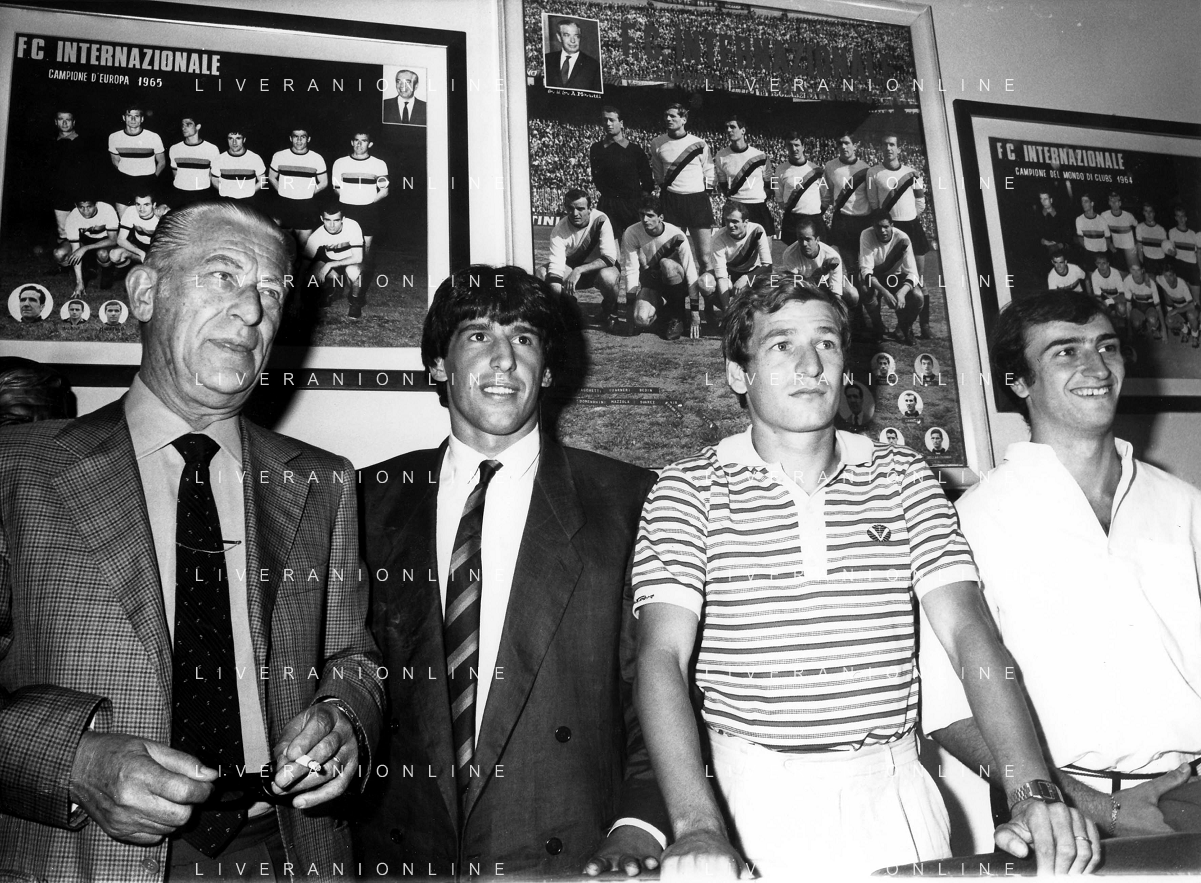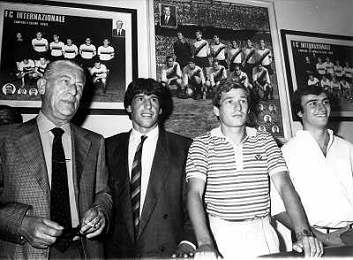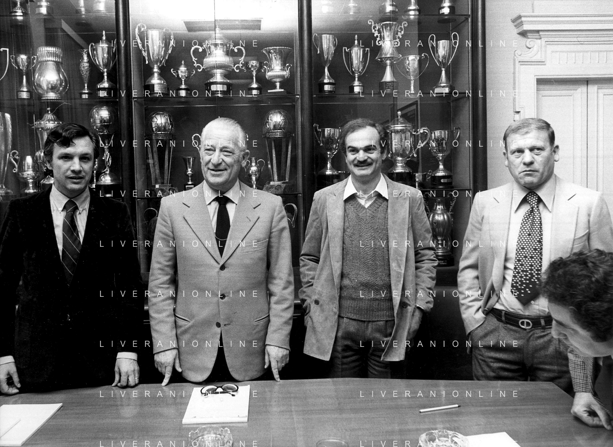 Ivanoe Fraizzoli Presidente Inter anni '70 con il direttore sportivo Giancarlo Beltrami , Sandro Mazzola e Bersellini Eugenio ph archivio ag. aldo liverani sas retrospettiva