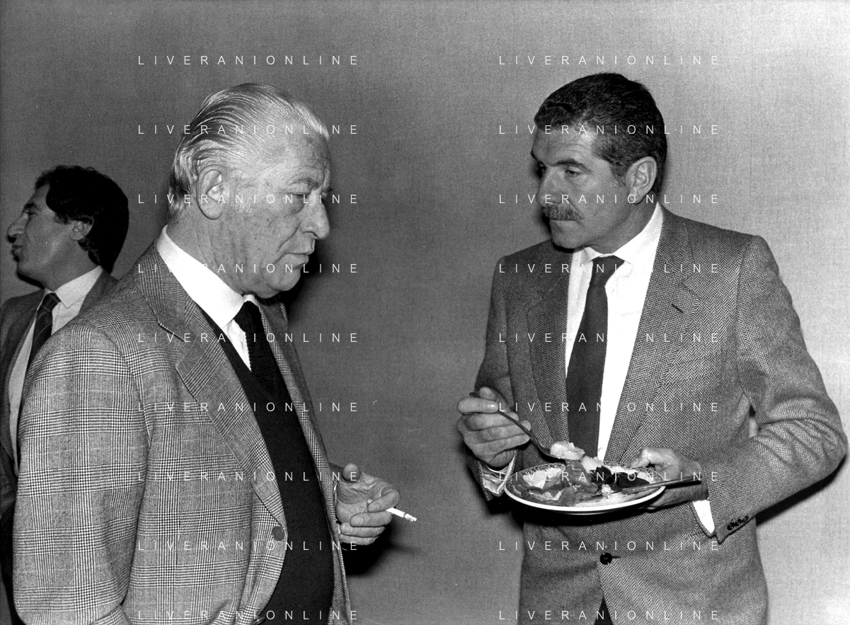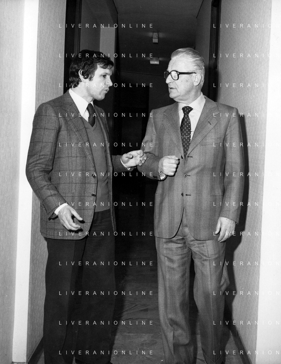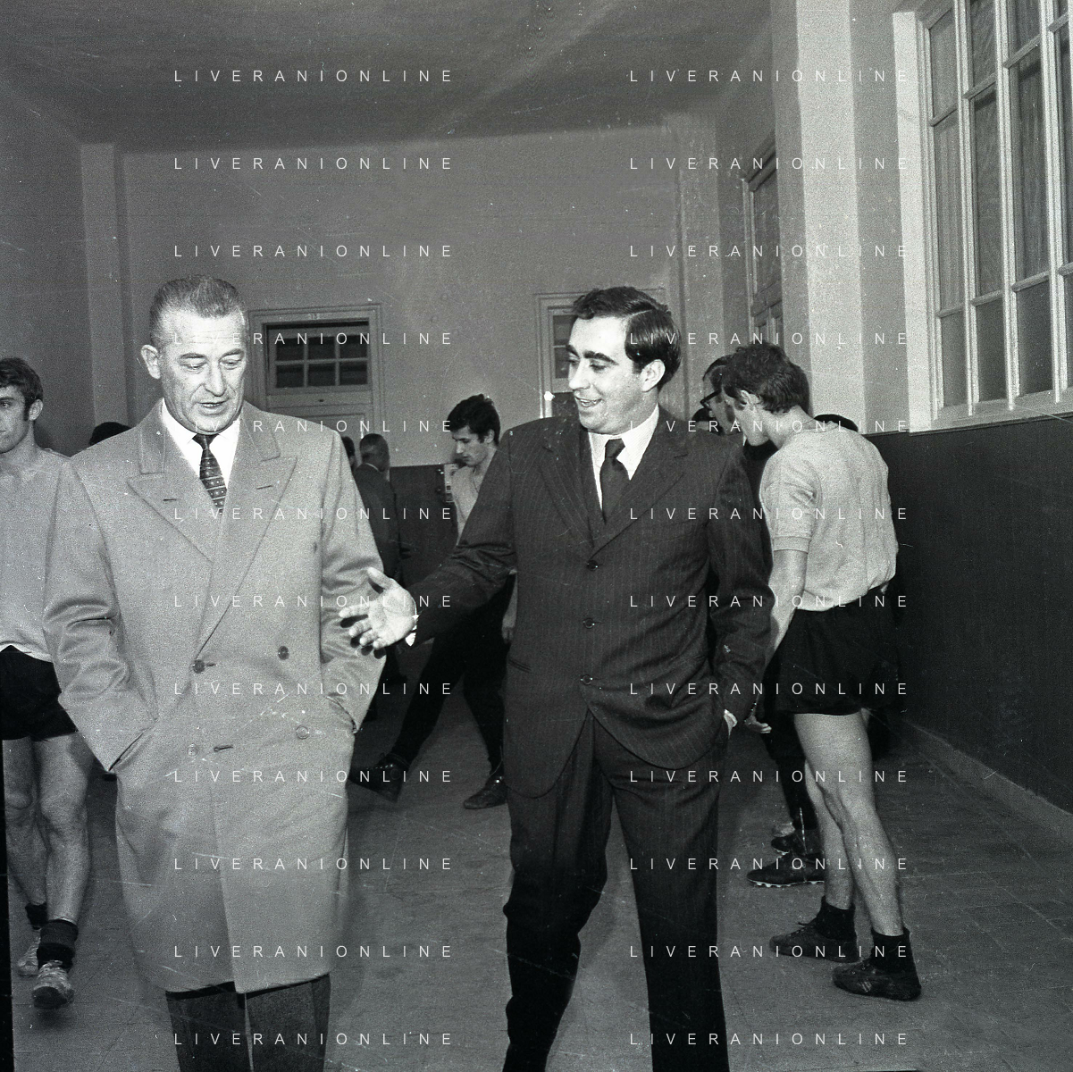 RETROSPETTIVA IVANOE FRAIZZOLI PRESIDENTE INTER CALCIO E INDUSTRIALE NELLA FOTO IVANOE FRAIZZOLI PRESIDENTE INTER CON FRANCO CARRARO NELL'ANNO 1969 A MILANO FUORI DAGLI SPOGLIATOI DELLO STADIO GIUSEPPE MEAZZA AG ALDO LIVERANI SAS