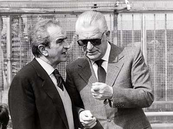 Peppino Prisco, Vice Presidente dell'Inter negli anni'60, con Ivanoe Fraizzoli, Presidente dell'Inter dal 1968 al 1984 ph archivio ag. aldo liverani sas