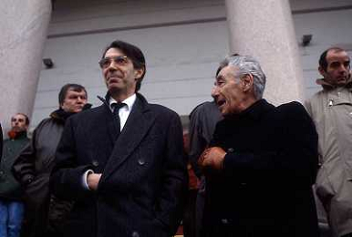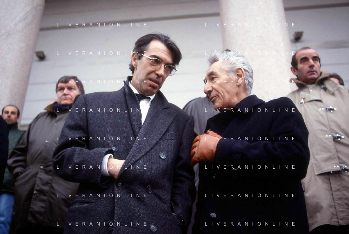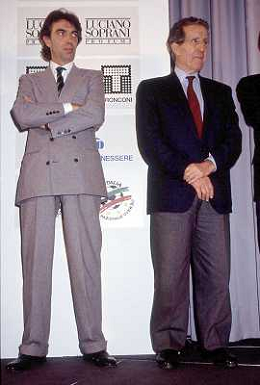 Massimo Moratti, Presidente dell'Inter dal 2000, con l'ex calciatore dell'Inter negli anni '50 Benito Lorenzi foto del 1994 ph archivio ag. aldo liverani sas