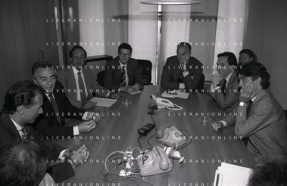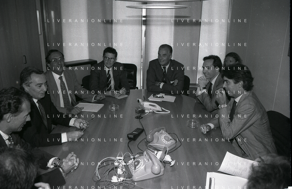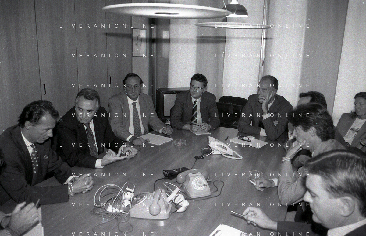 NEG-RETROSPETTIVA MASSIMO MORATTI PRESIDENTE INTER NELLA FOTO MASSIMO MORATTI OSPITE DELL REDAZIONE DELLA GAZZETTA DELLO SPORT SETTEMBRE 1992 A MILANO AG ALDO LIVERANI SAS