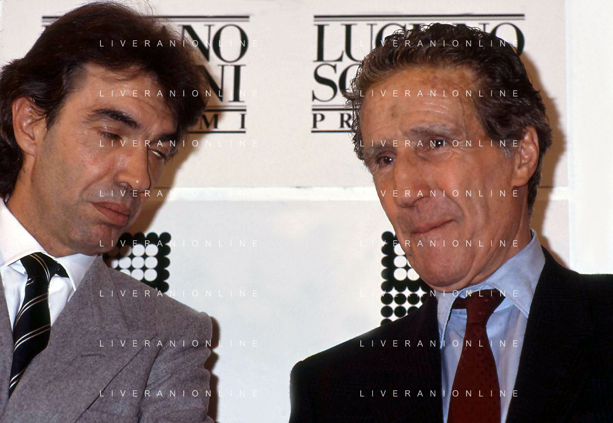 Massimo Moratti, Presidente dell'Inter dal 1995, con Helenio Herrera, allenatore dell'Inter negli anni '60 foto scattata durante il Premio Meazza il 7/11/1989 ph archivio ag. aldo liverani sas