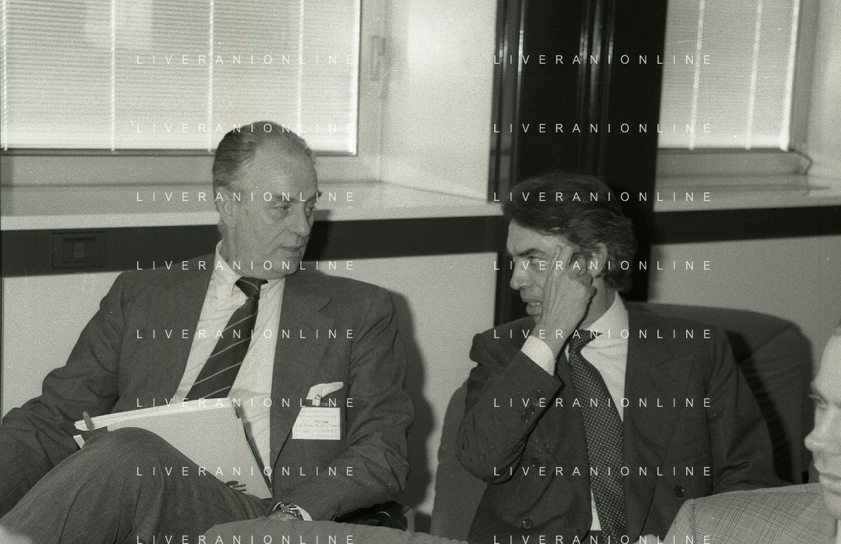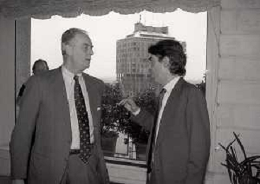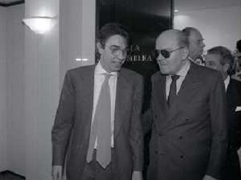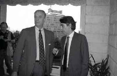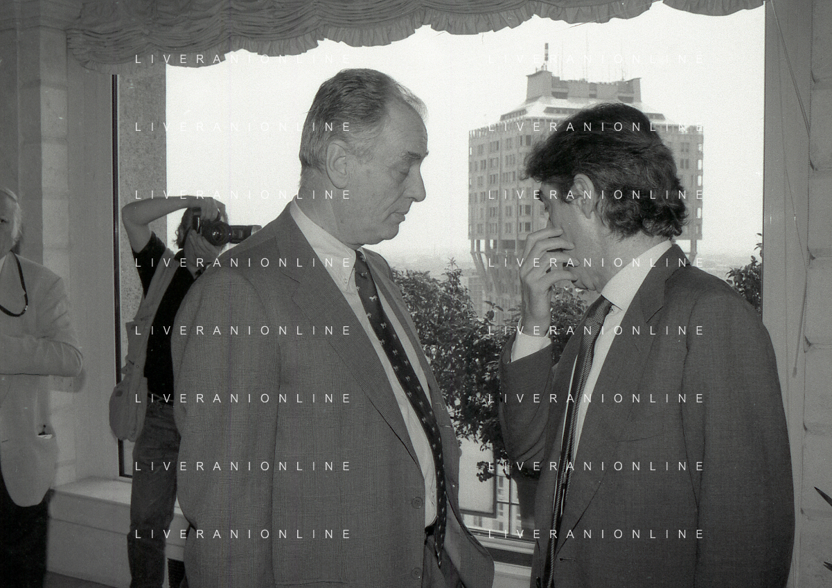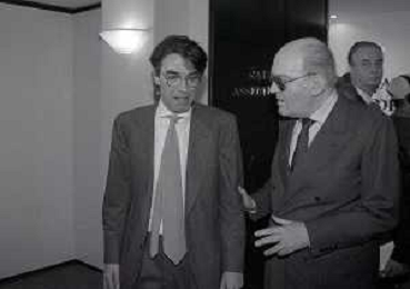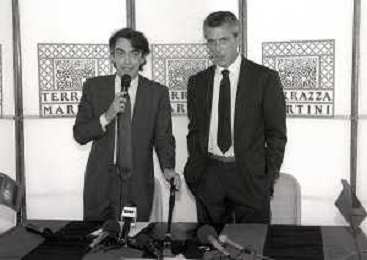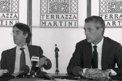 NEG-RETROSPETTIVA MASSIMO MORATTI PRESIDENTE INTER NELLA FOTO MASSIMO MORATTI PRESIDENTE INTER NELL'ANNO 1995 CON GIAMMARIA VISCONTI DI MODRONE A MILANO IN TERRAZZA MARTINI A MILANO AG ALDO LIVERANI SAS