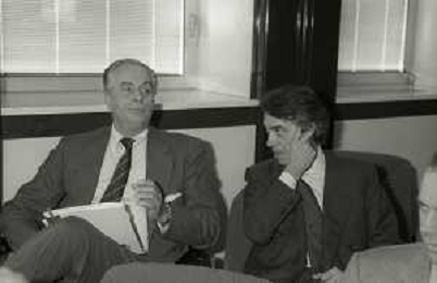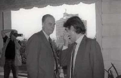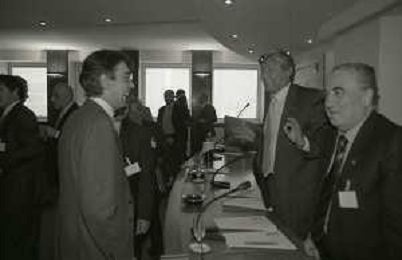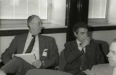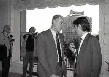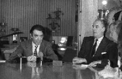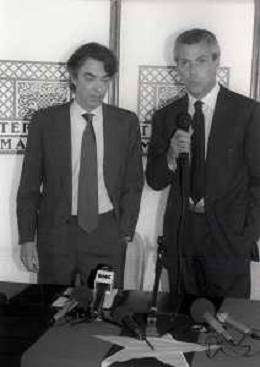 NEG-RETROSPETTIVA MASSIMO MORATTI PRESIDENTE INTER NELLA FOTO MASSIMO MORATTI PRESIDENTE INTER CON GIUSEPPE PRISCO NELL'ANNO 1995 IN CONFERENZA STAMPA A MILANO SEDE INTER AG ALDO LIVERANI SAS