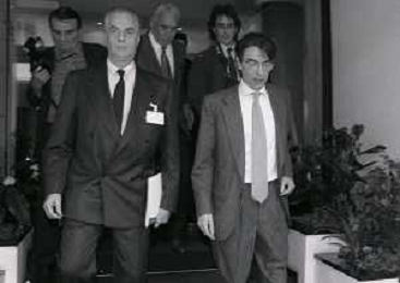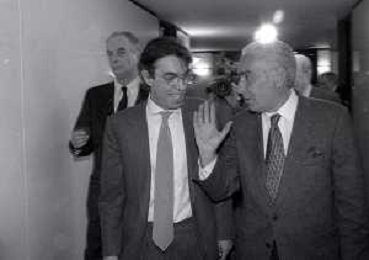 NEG-RETROSPETTIVA MASSIMO MORATTI PRESIDENTE INTER NELLA FOTO MASSIMO MORATTI IL PRIMO GIORNO IN LEGA CALCIO DA PRESIDENTE INTER NELL'ANNO 1995 CON VINCENZO MATARRESE AG ALDO LIVERANI SAS