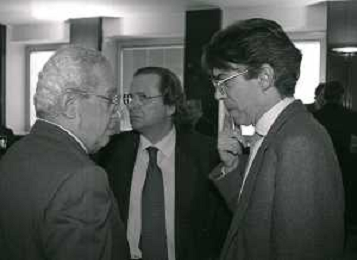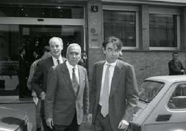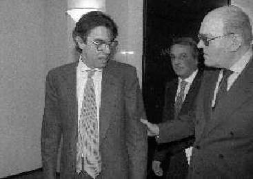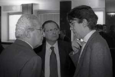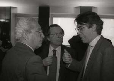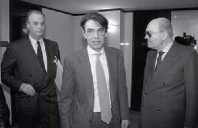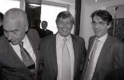 NEG-RETROSPETTIVA MASSIMO MORATTI PRESIDENTE INTER NELLA FOTO MASSIMO MORATTI IL PRIMO GIORNO IN LEGA CALCIO DA PRESIDENTE INTER NELL'ANNO 1995 CON VITTORIO CHIUSANO E MICHELE TIGANI AG ALDO LIVERANI SAS