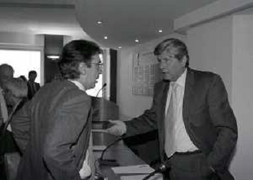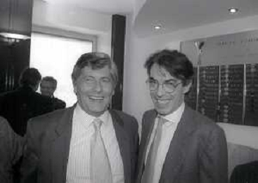 NEG-RETROSPETTIVA MASSIMO MORATTI PRESIDENTE INTER NELLA FOTO MASSIMO MORATTI CON GIAMMARIA VISCONTI DI MODRONE IL PRIMO GIORNO IN LEGA CALCIO DA PRESIDENTE INTER NELL'ANNO 1995 AG ALDO LIVERANI SAS
