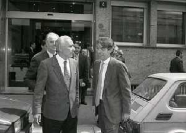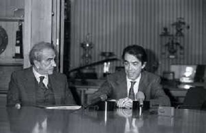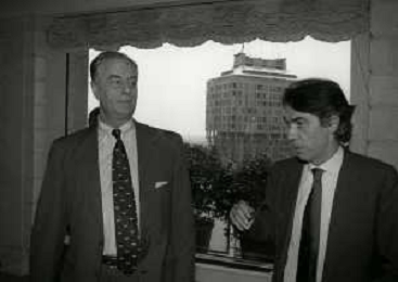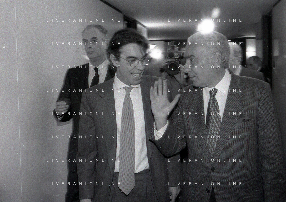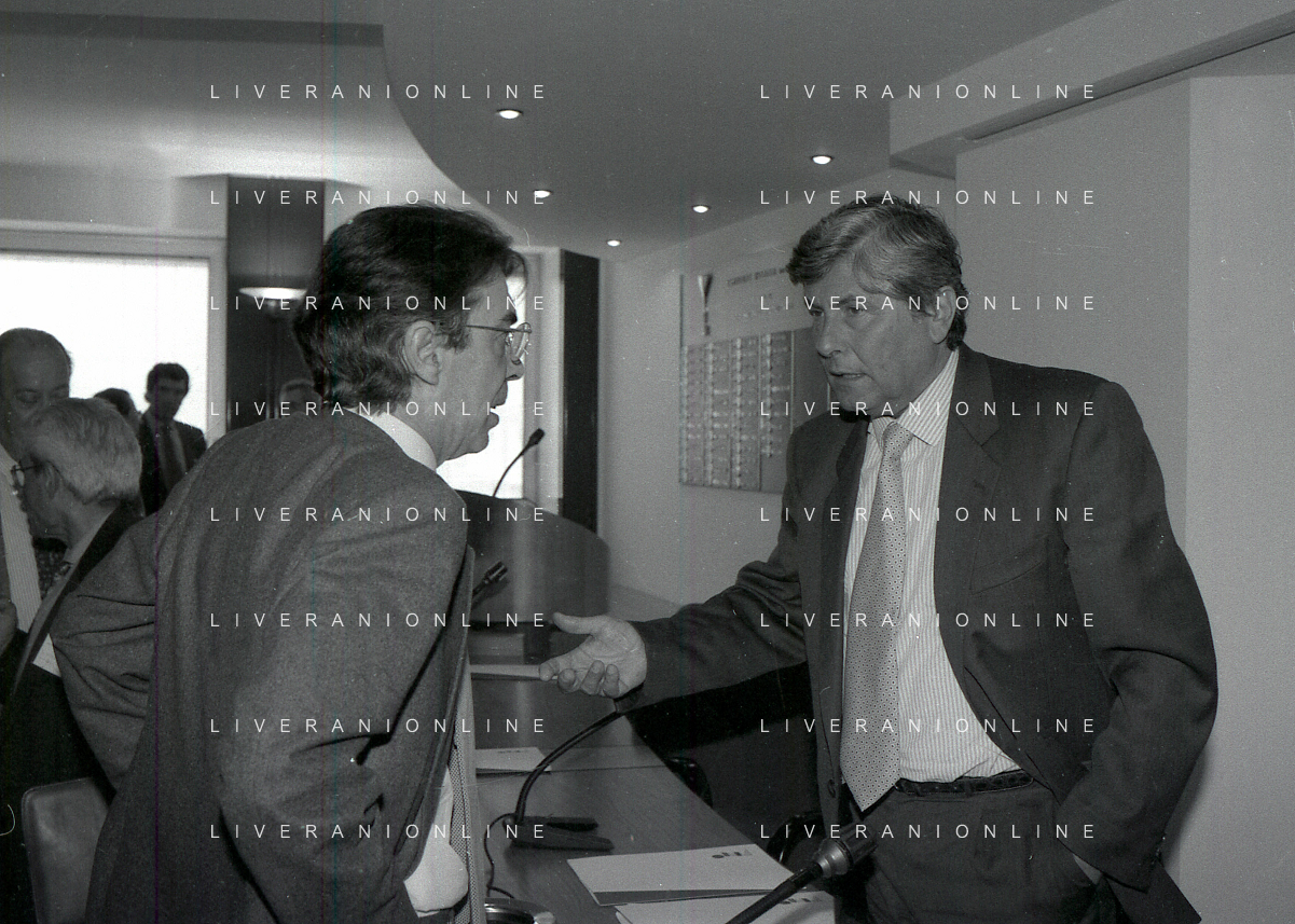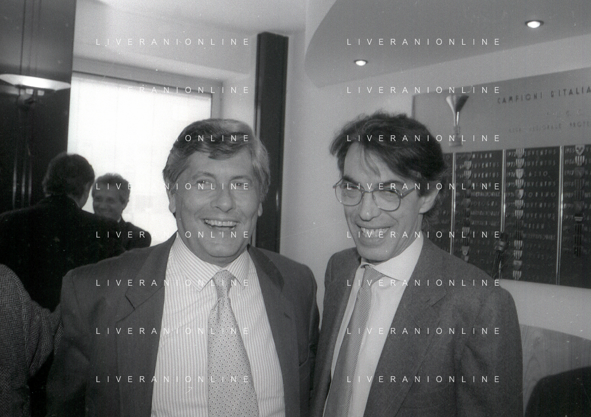 NEG-RETROSPETTIVA MASSIMO MORATTI PRESIDENTE INTER NELLA FOTO MASSIMO MORATTI PRESIDENTE INTER NELL'ANNO 1995 CON GIAMMARIA VISCONTI DI MODRONE A MILANO IN LEGA CALCIO AG ALDO LIVERANI SAS