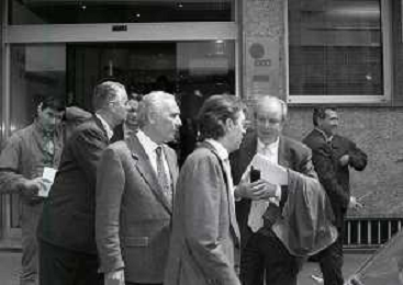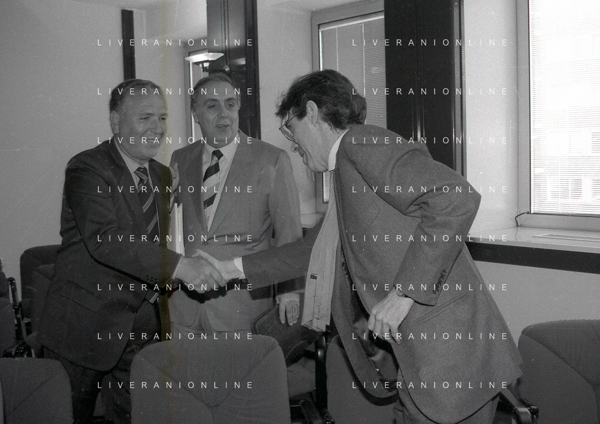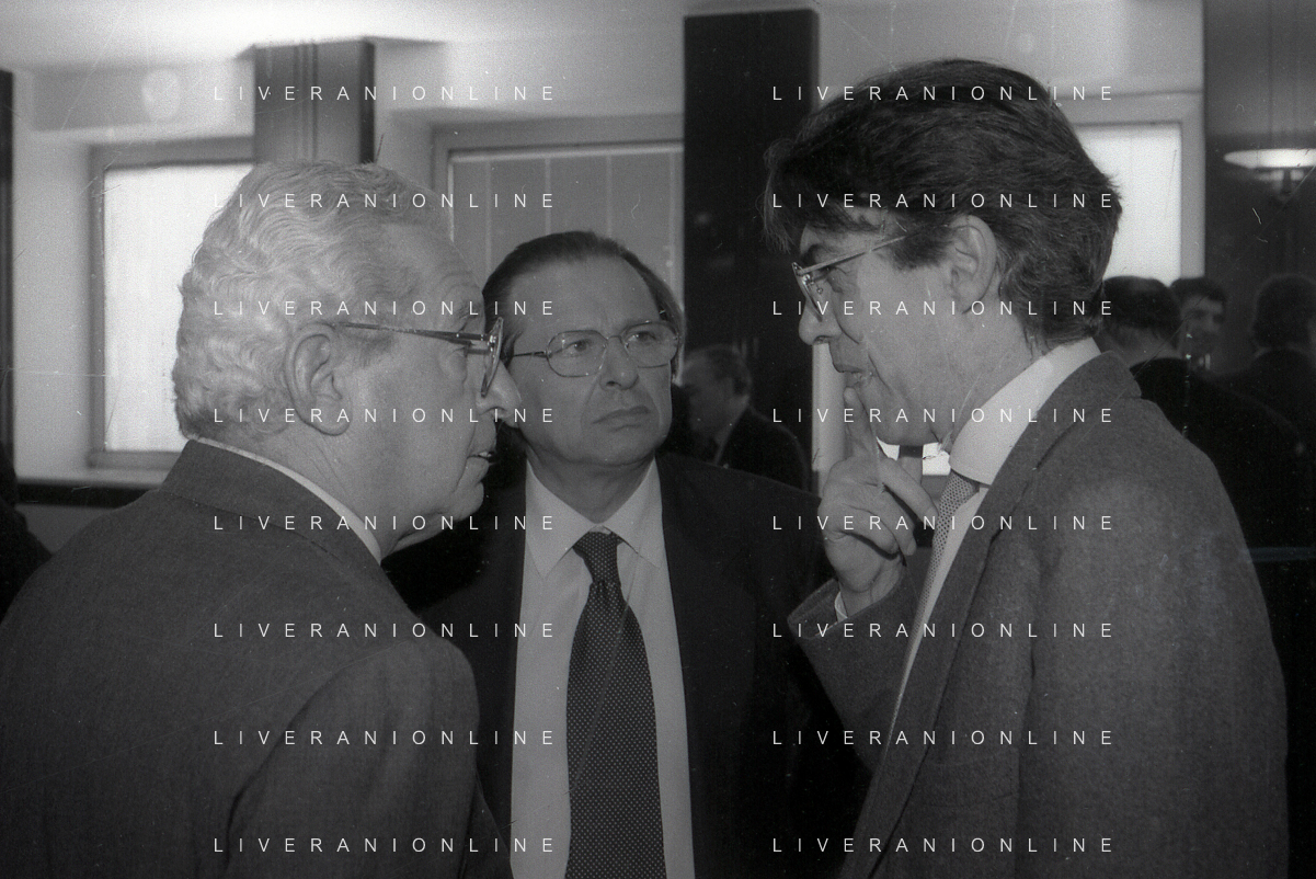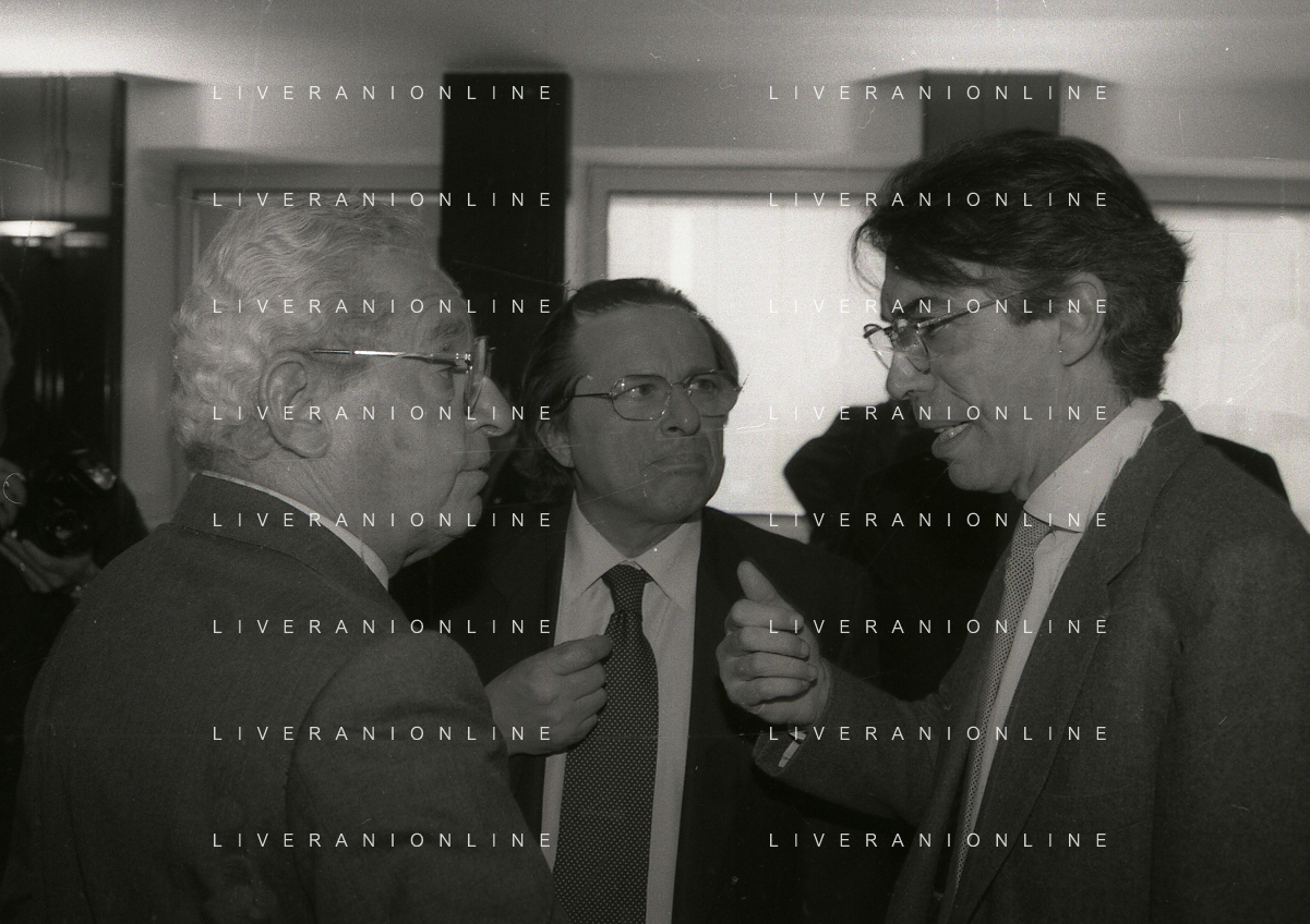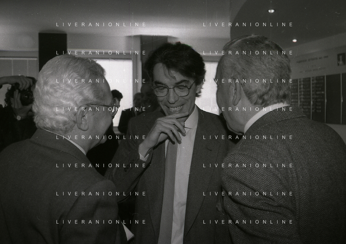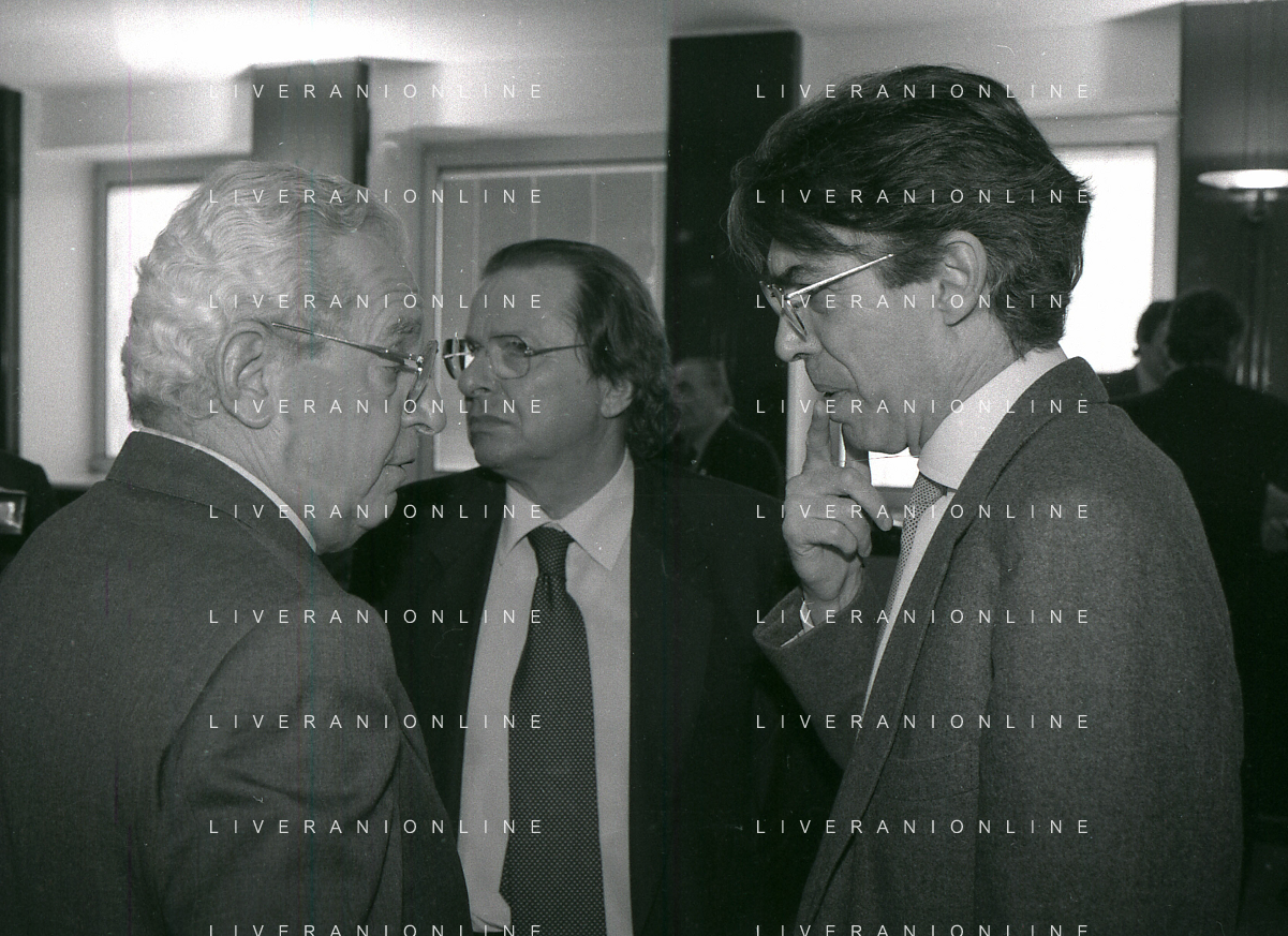 NEG-RETROSPETTIVA MASSIMO MORATTI PRESIDENTE INTER NELLA FOTO MASSIMO MORATTI IL PRIMO GIORNO IN LEGA CALCIO DA PRESIDENTE INTER NELL'ANNO 1995 CON VITTORIO CHIUSANO E GINO CORIONI AG ALDO LIVERANI SAS