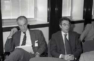 NEG-RETROSPETTIVA MASSIMO MORATTI PRESIDENTE INTER NELLA FOTO MASSIMO MORATTI IL PRIMO GIORNO IN LEGA CALCIO DA PRESIDENTE INTER NELL'ANNO 1995 CON GIAMMARIA VISCONTI DI MODRONE AG ALDO LIVERANI SAS