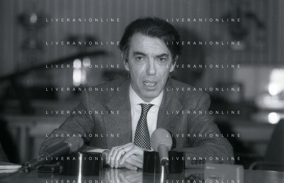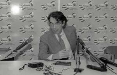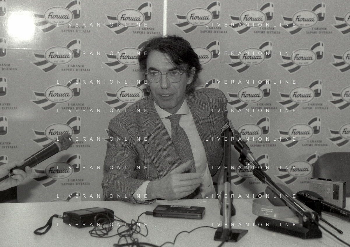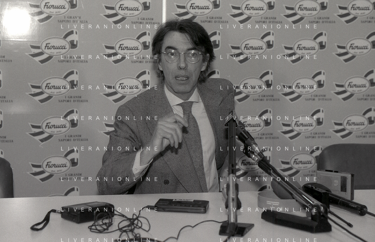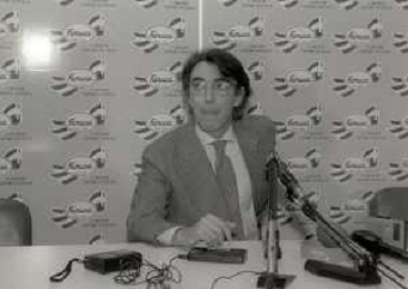 NEG-RETROSPETTIVA MASSIMO MORATTI PRESIDENTE INTER NELLA FOTO MASSIMO MORATTI PRESIDENTE INTER NELL'ANNO 1995 IN CONFERENZA STAMPA A MILANO SEDE INTER AG ALDO LIVERANI SAS