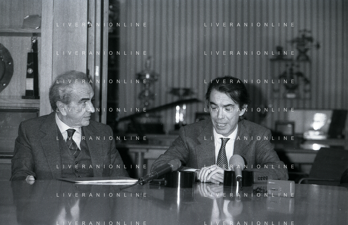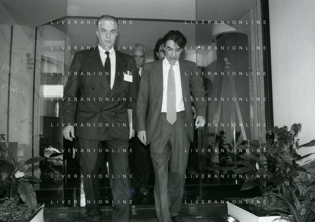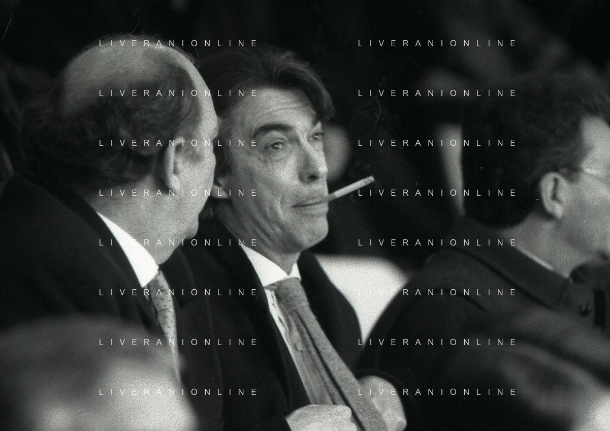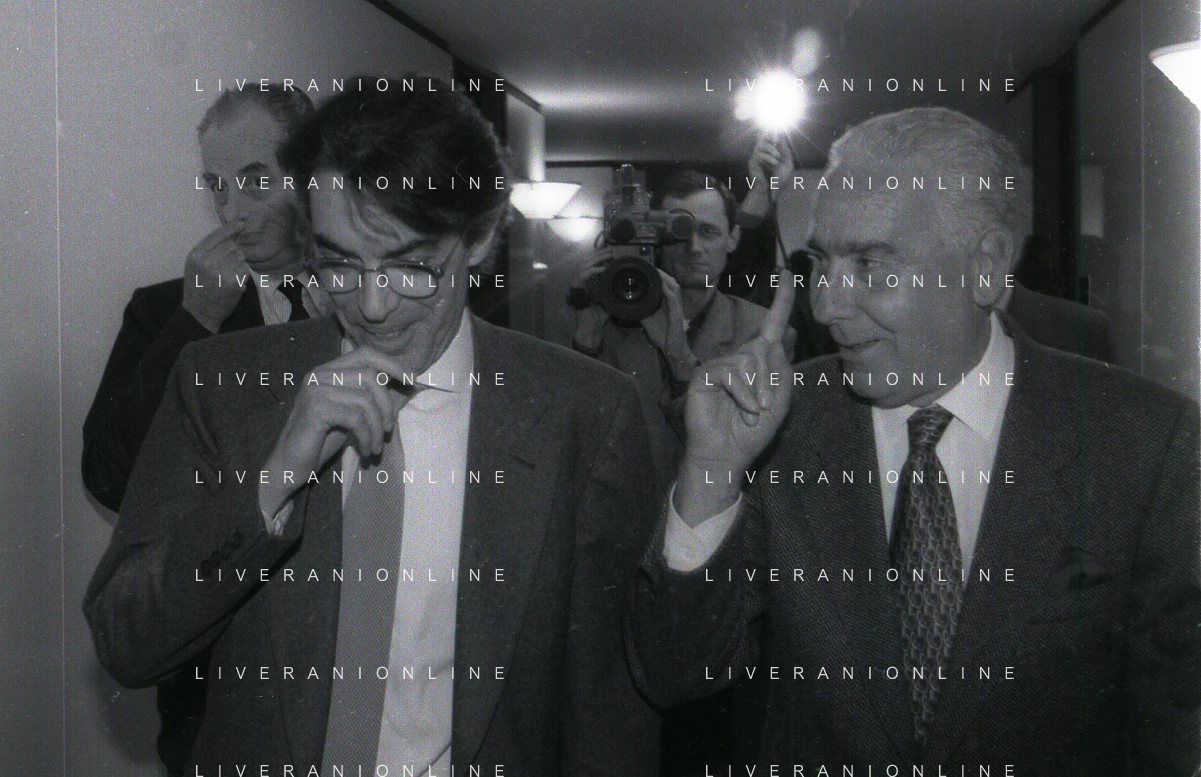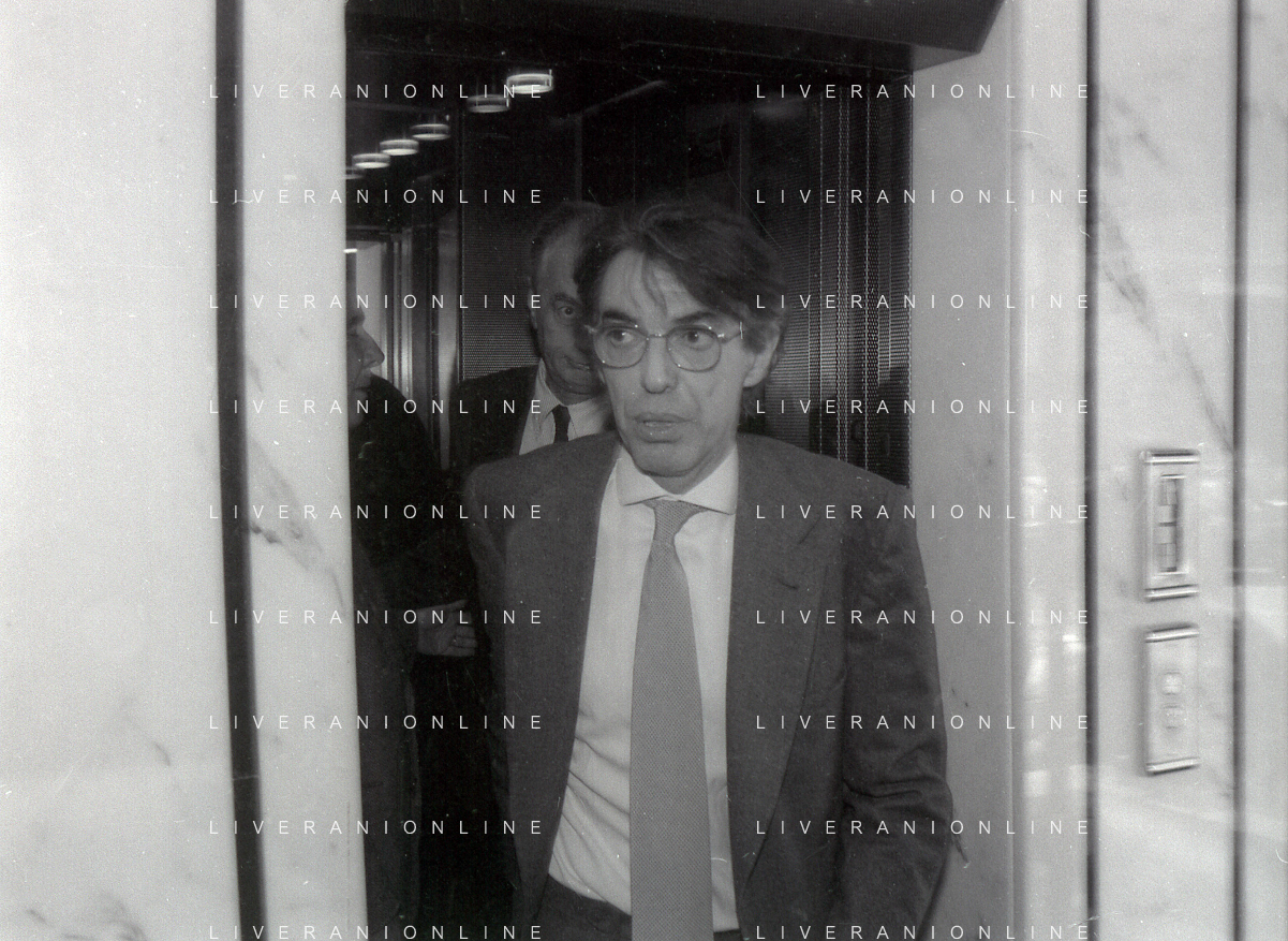 NEG-RETROSPETTIVA MASSIMO MORATTI PRESIDENTE INTER NELLA FOTO MASSIMO MORATTI PRESIDENTE INTER CON GIAMMARIA VISCONTI DI MODRONE NELL'ANNO 1995 IN CONFERENZA STAMPA A MILANO SEDE INTER AG ALDO LIVERANI SAS