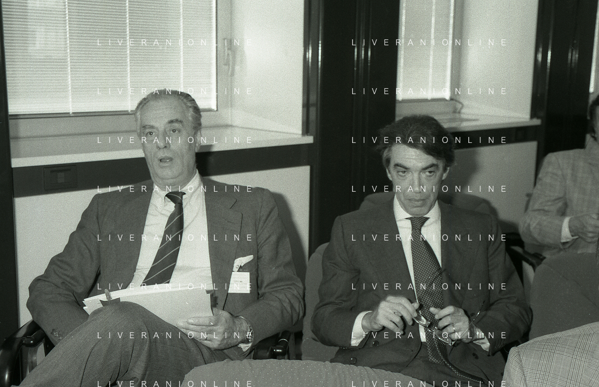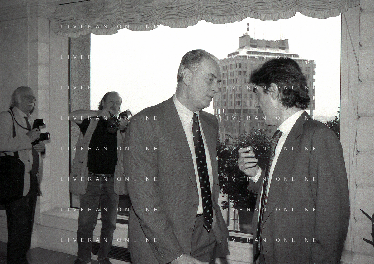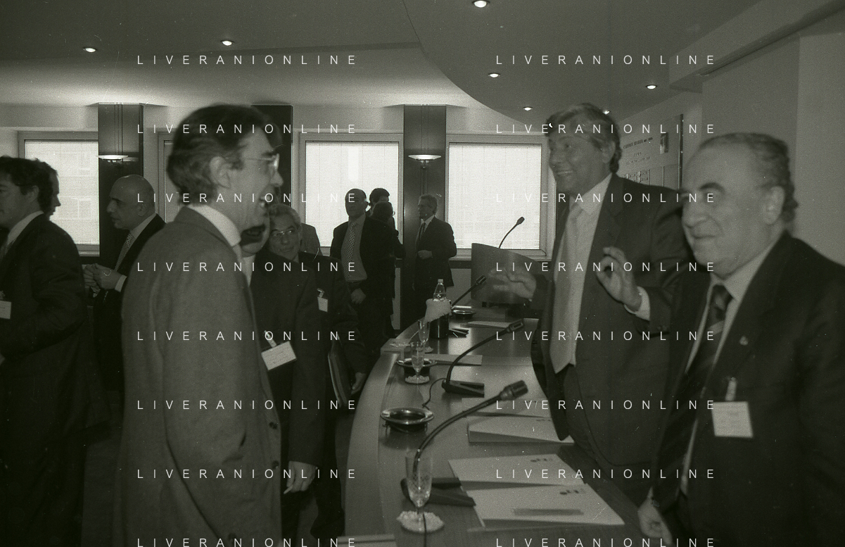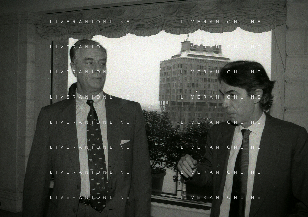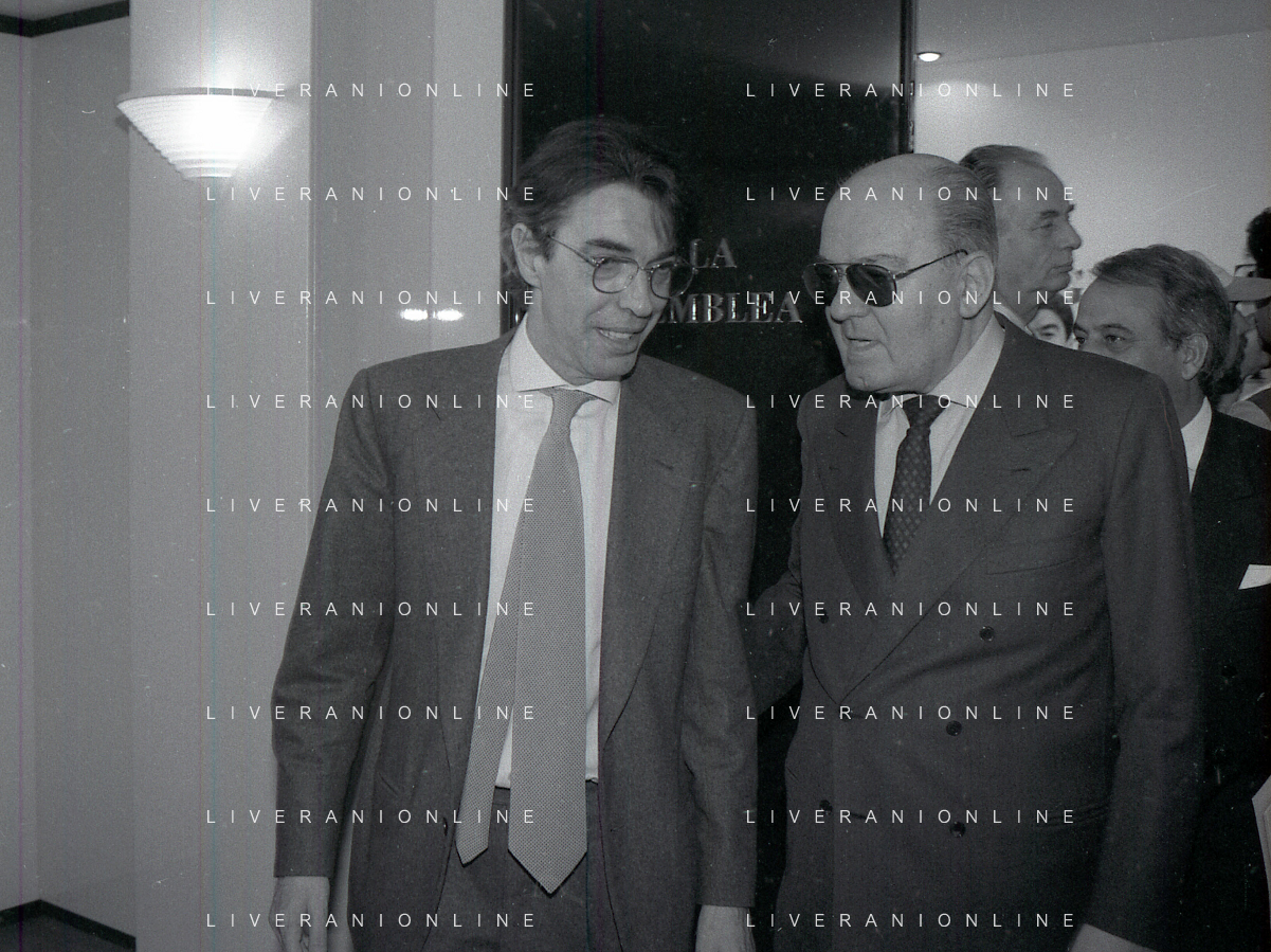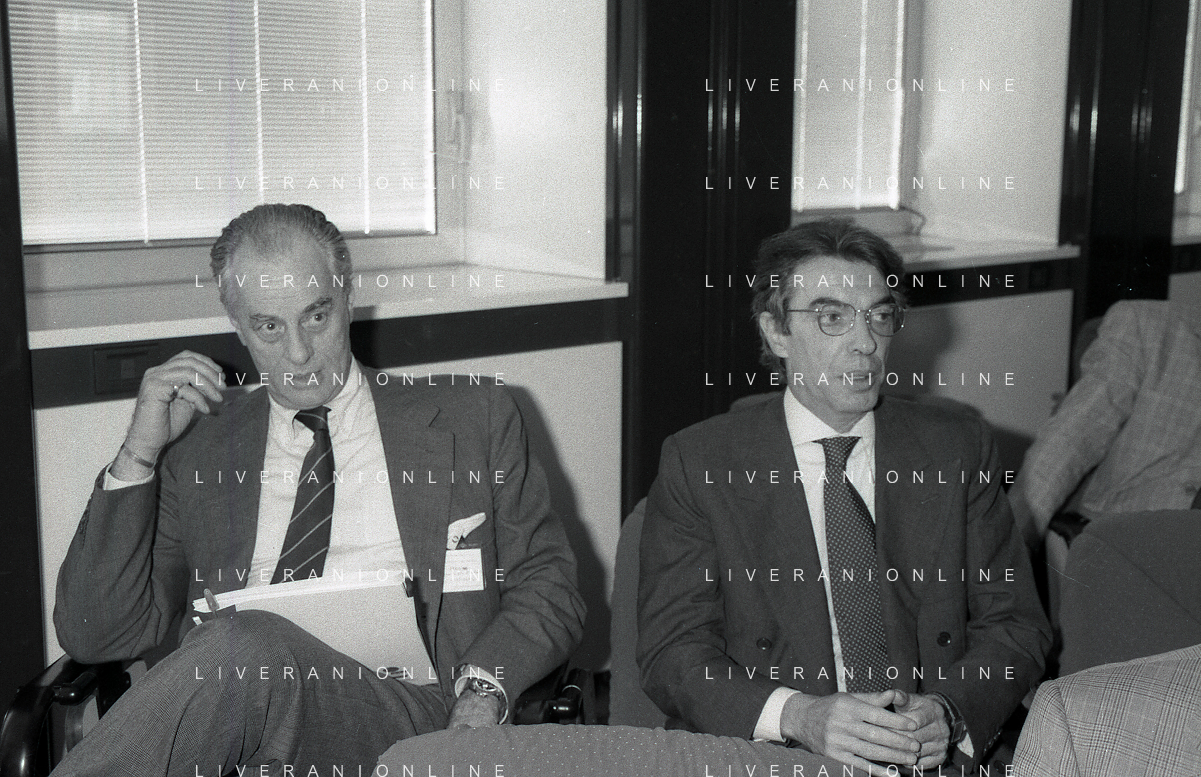 NEG-RETROSPETTIVA MASSIMO MORATTI PRESIDENTE INTER NELLA FOTO MASSIMO MORATTI PRESIDENTE INTER CON GIAMMARIA VISCONTI DI MODRONE NELL'ANNO 1995 IN CONFERENZA STAMPA A MILANO SEDE INTER AG ALDO LIVERANI SAS
