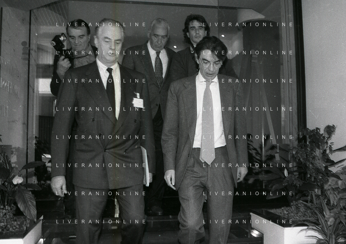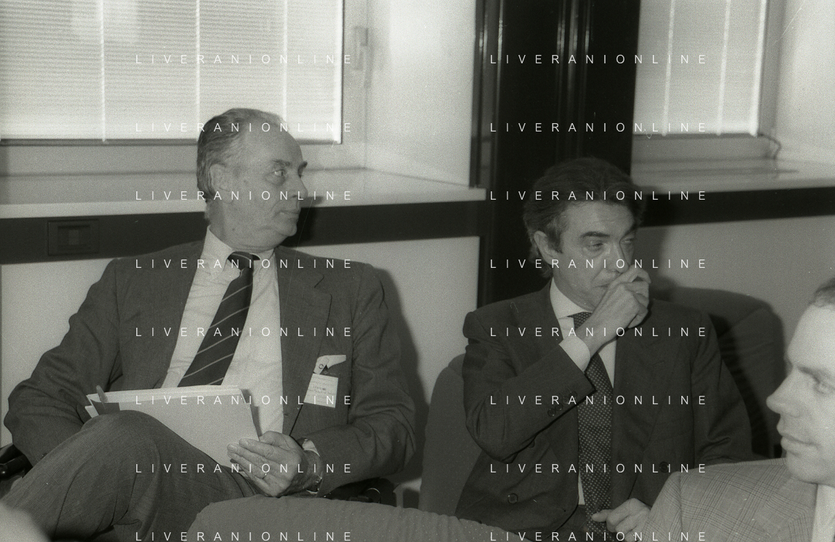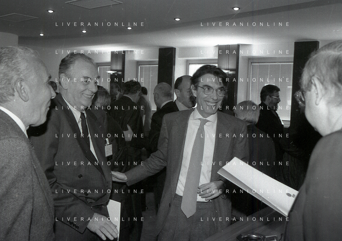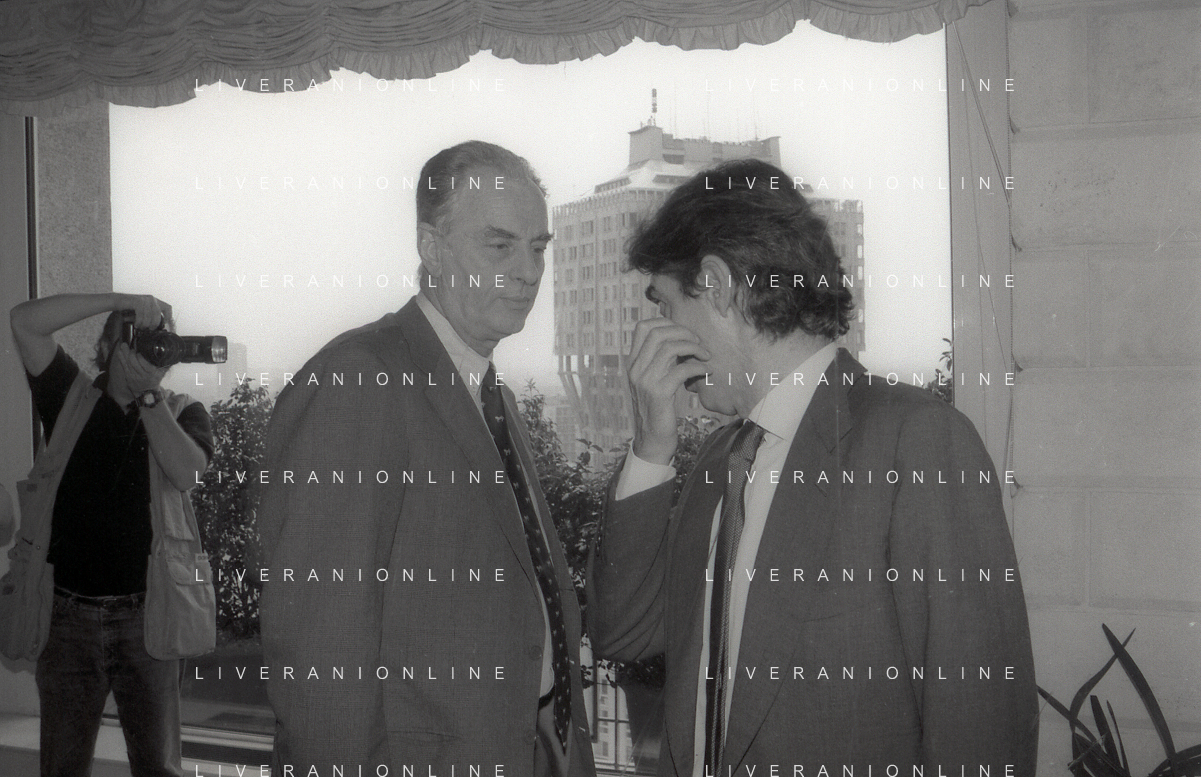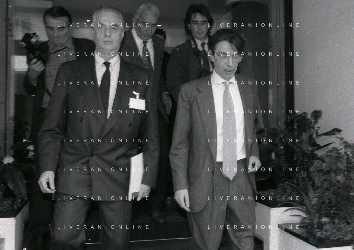 NEG-RETROSPETTIVA MASSIMO MORATTI PRESIDENTE INTER NELLA FOTO MASSIMO MORATTI PRESIDENTE INTER CON GIAMMARIA VISCONTI DI MODRONE NELL'ANNO 1995 IN CONFERENZA STAMPA A MILANO SEDE INTER AG ALDO LIVERANI SAS