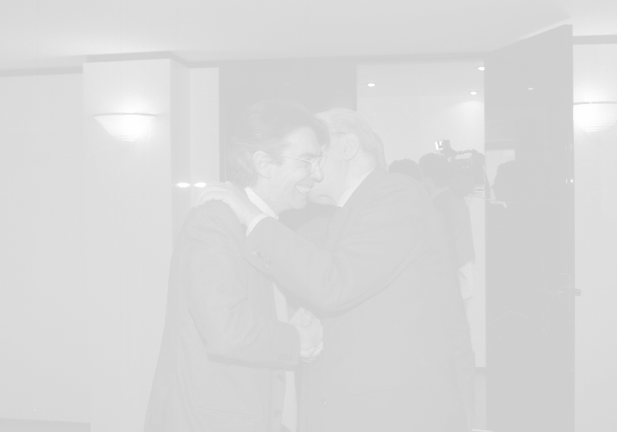 NEG-RETROSPETTIVA MASSIMO MORATTI PRESIDENTE INTER NELLA FOTO MASSIMO MORATTI CON MARCO TRONCHETTI PROVERA PRESIDENTE PIRELLI PER LA SPONSORIZZAZIONE SULLE MAGLIE DELL'INTER A TERRAZZA MARTINI MILANO NELL'ANNO 1995 AG ALDO LIVERANI SAS