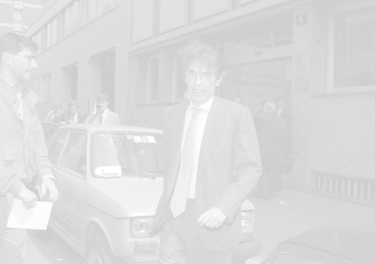 NEG-RETROSPETTIVA MASSIMO MORATTI PRESIDENTE INTER NELLA FOTO MASSIMO MORATTI IL PRIMO GIORNO IN LEGA CALCIO DA PRESIDENTE INTER NELL'ANNO 1995 CON MICHELE TIGANI AG ALDO LIVERANI SAS