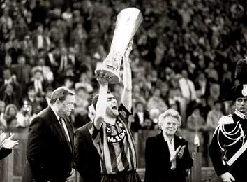Esultanza di Giuseppe Bergomi che festeggia la vittoria della Coppa Uefa nella foto con Johansson Roma - Inter finale Coppa Uefa 22/05/1991 ph archivio ag. aldo liverani sas retrospettiva
