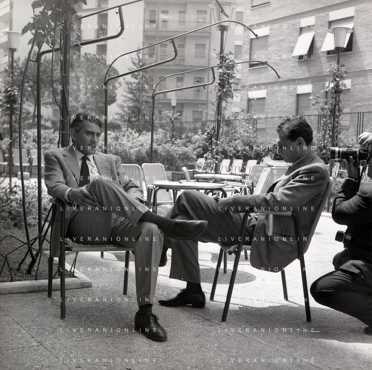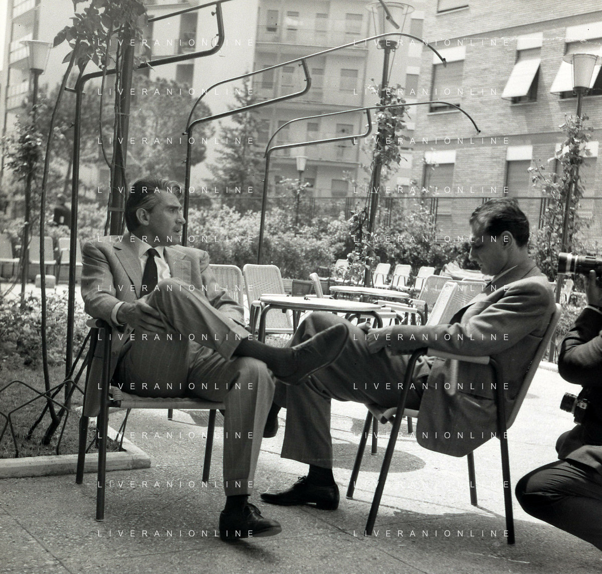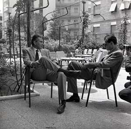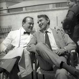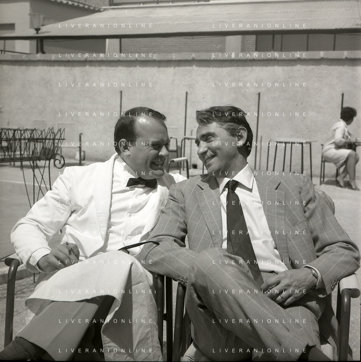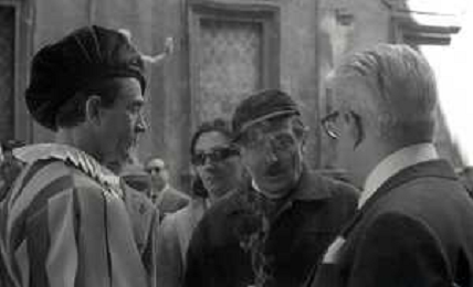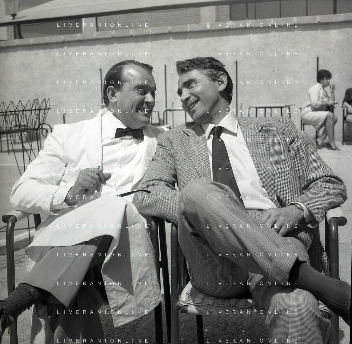 RETROSPETTIVA WALTER CHIARI ATTORE NELLA FOTO WALTER CHIARI CON VITTORIO DE SICA SUL SET DEL FILM“IO IO IO E GLI ALTRI“ NELL'ANNO 1965 AG ALDO LIVERANI SAS