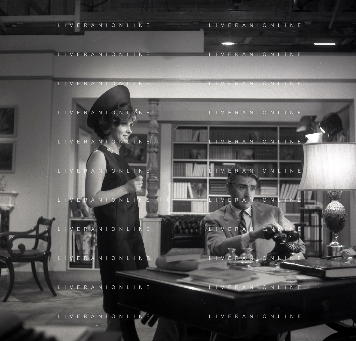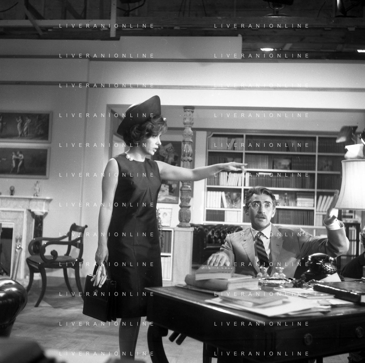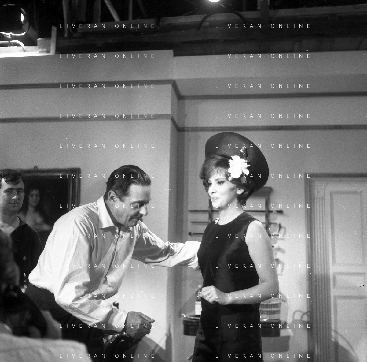 RETROSPETTIVA WALTER CHIARI ATTORE NELLA FOTO WALTER CHIARI CON GINA LOLLOBRIGIDA SUL SET DEL FILM“IO IO IO E GLI ALTRI“ NELL'ANNO 1965 AG ALDO LIVERANI SAS