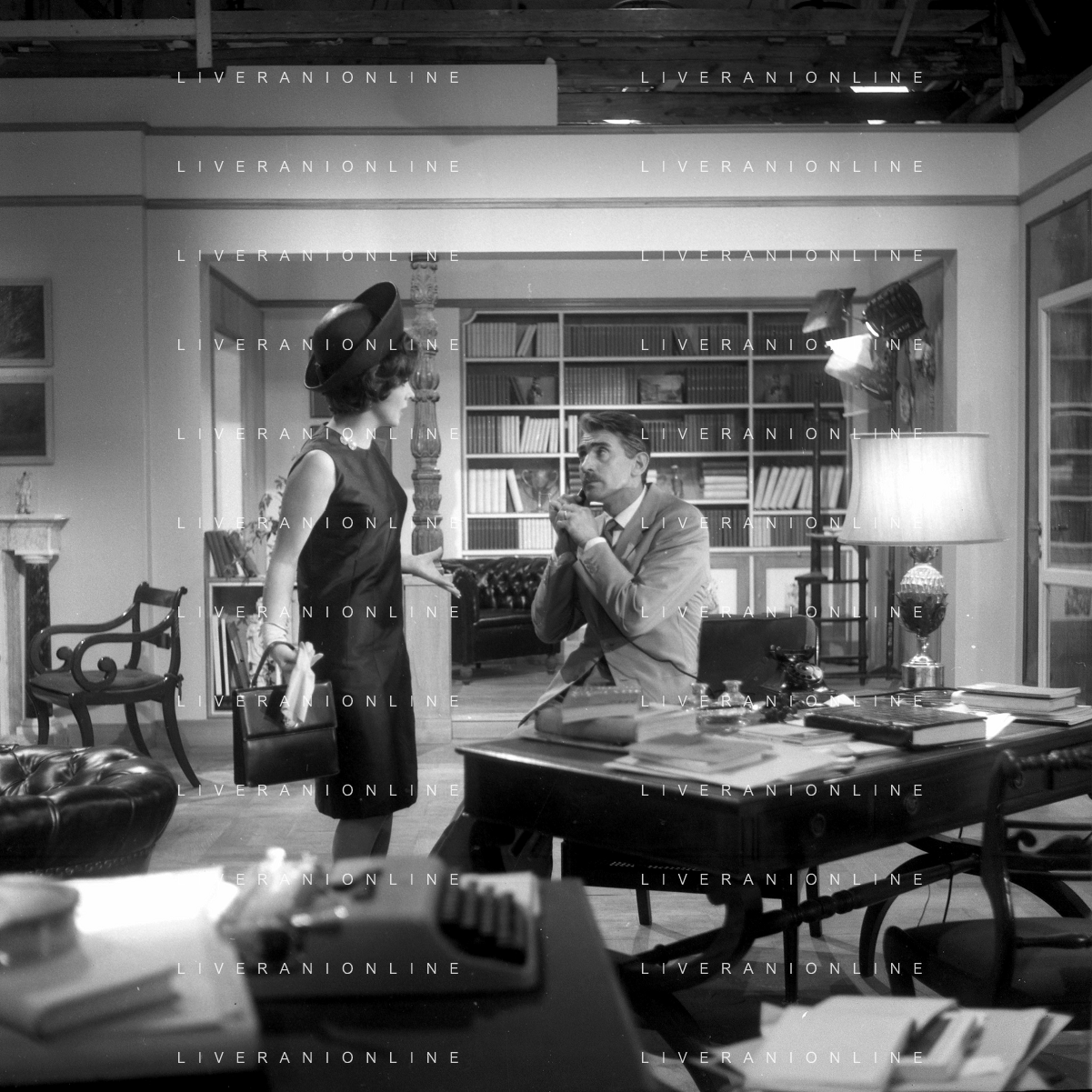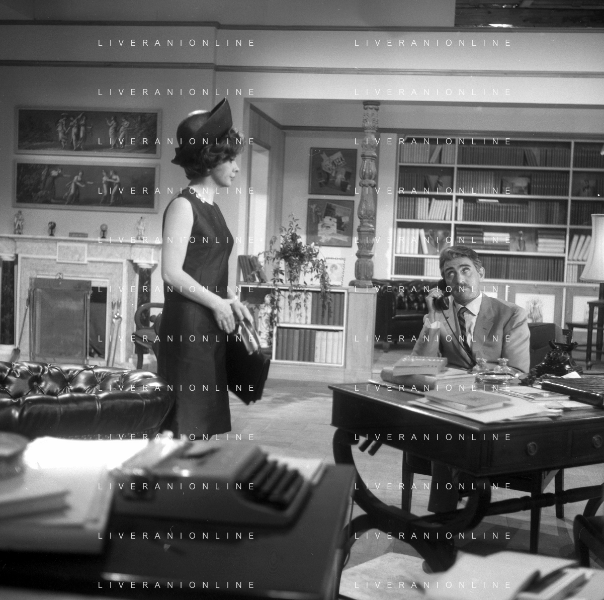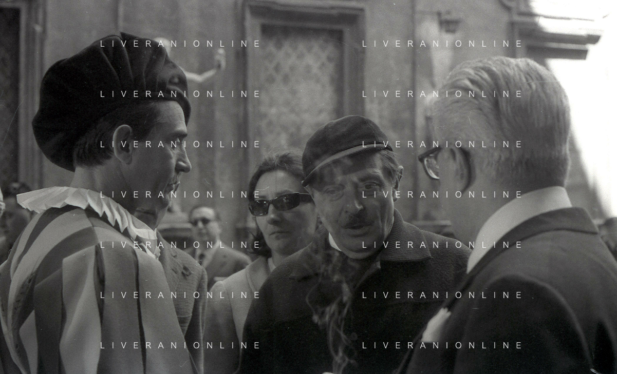 RETROSPETTIVA WALTER CHIARI ATTORE NELLA FOTO WALTER CHIARI CON GINA LOLLOBRIGIDA SUL SET DEL FILM“IO IO IO E GLI ALTRI“ NELL'ANNO 1965 AG ALDO LIVERANI SAS