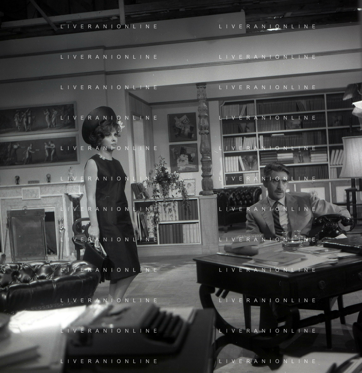 GINA LOLLOBRIGIDA ATTRICE ITALIANA - RETROSPETTIVA nella foto a Roma Giugno 1965 sul set durante le riprese del film 'Io, io, io... e gli altri' diretto da Alessandro Blasetti con walter chiari AG. ALDO LIVERANI SAS