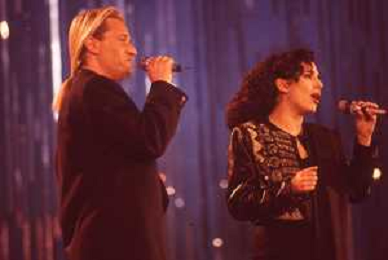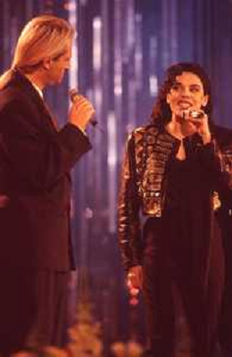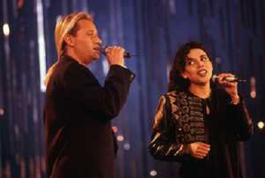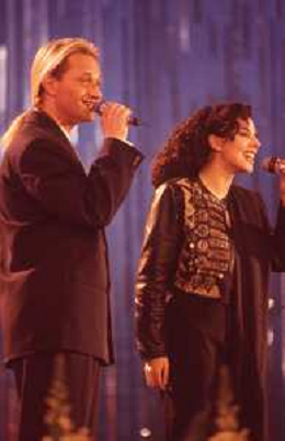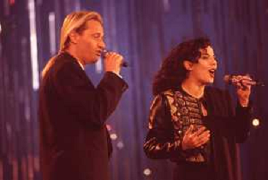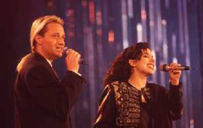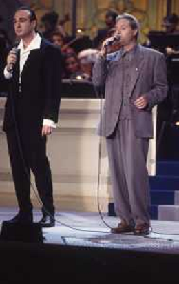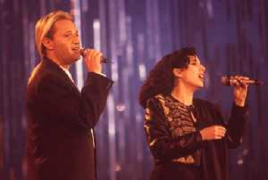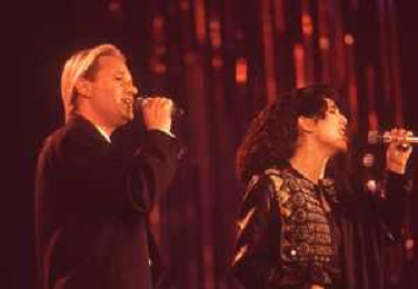 DIAP-RETROSPETTIVA AMEDEO MINGHI CANTANTE NELLA FOTO AMEDEO MINGHI CON MIETTA NELL'ANNO 1990 AG ALDO LIVERANI SAS