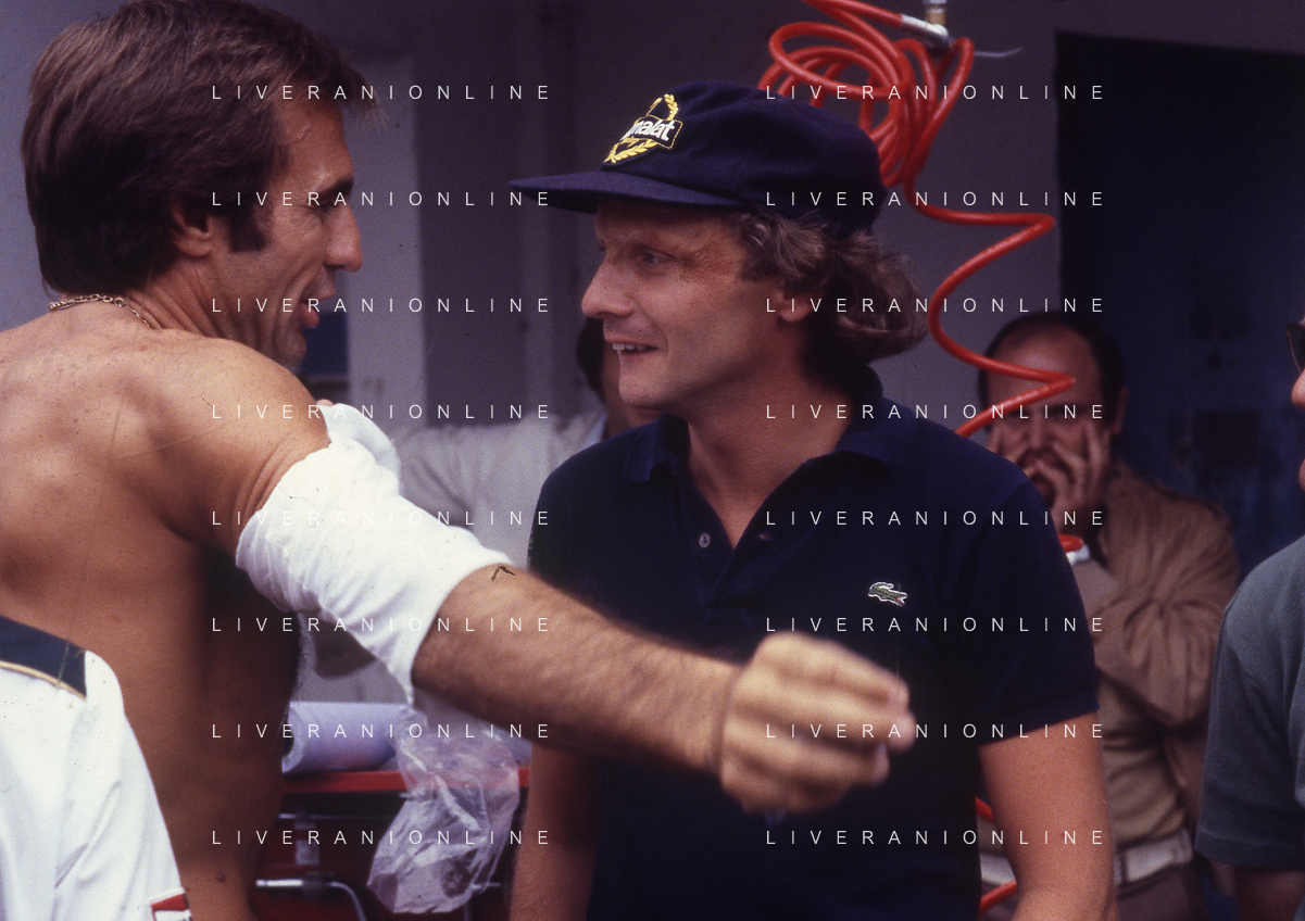 RETROSPETTIVA CARLOS REUTEMANN PILOTA NELLA FOTO CARLOS REUTEMANN CON NIKI LAUDA AG ALDO LIVERANI SAS