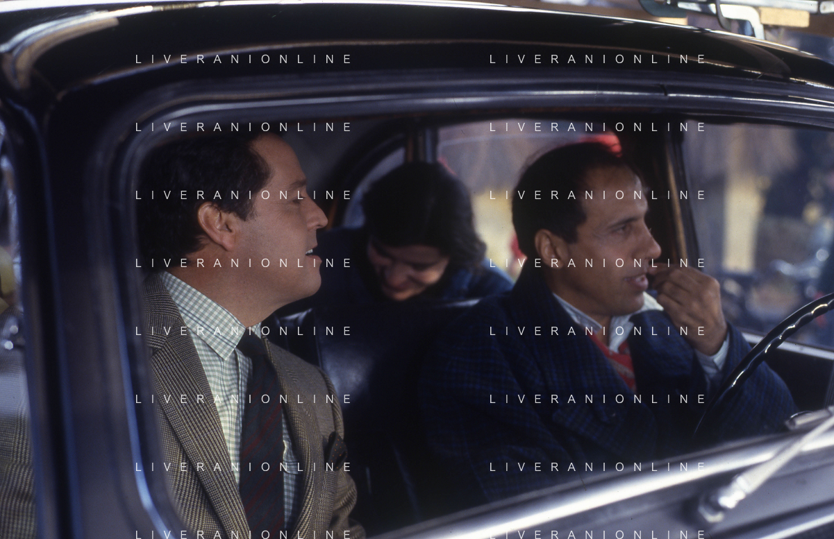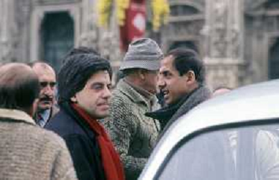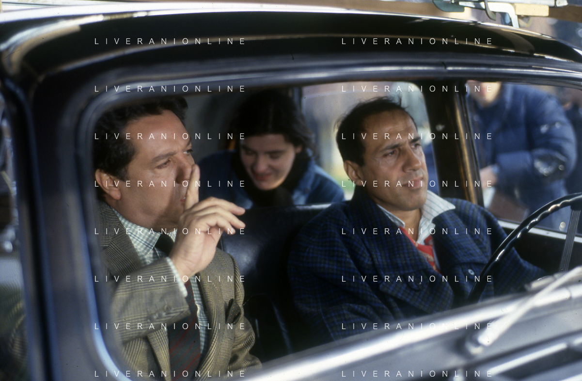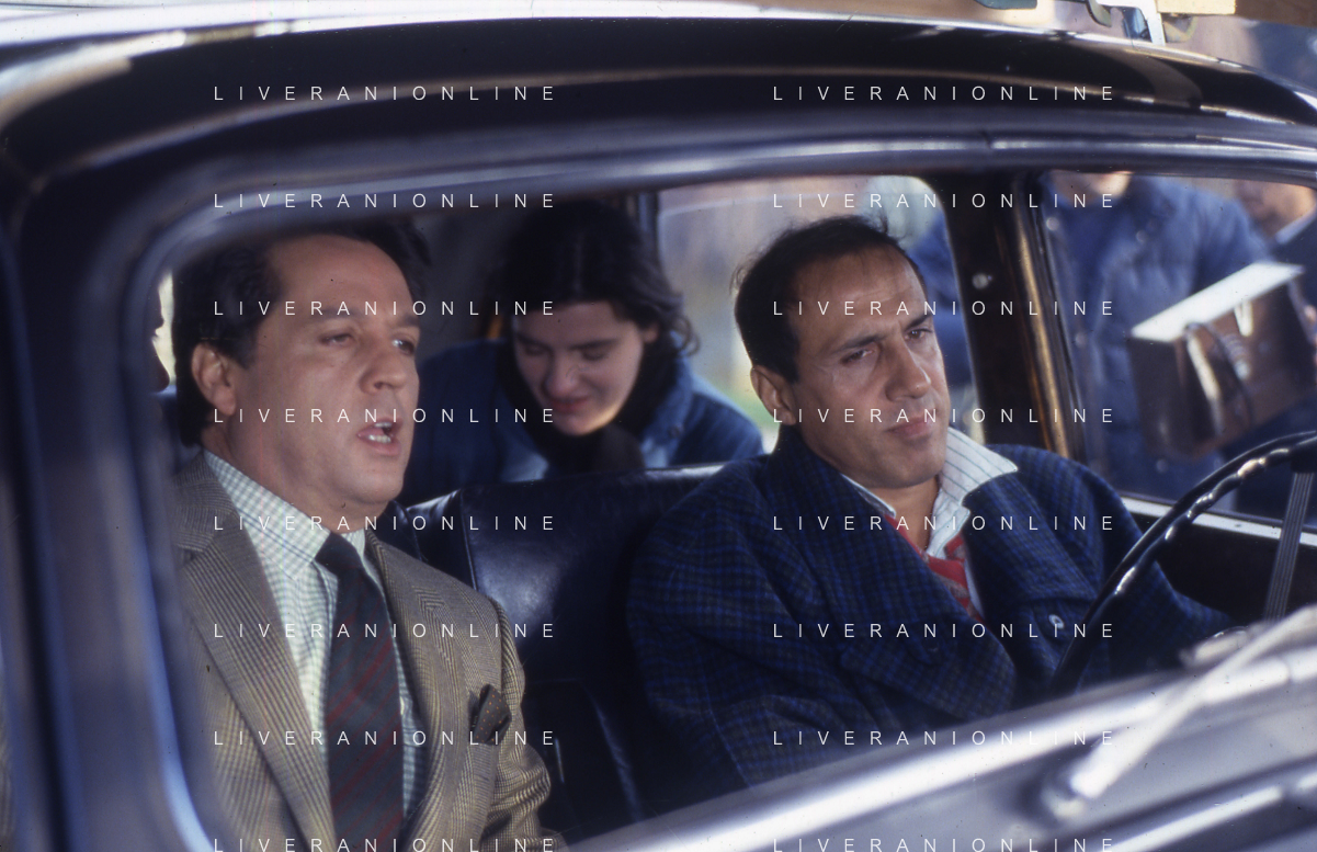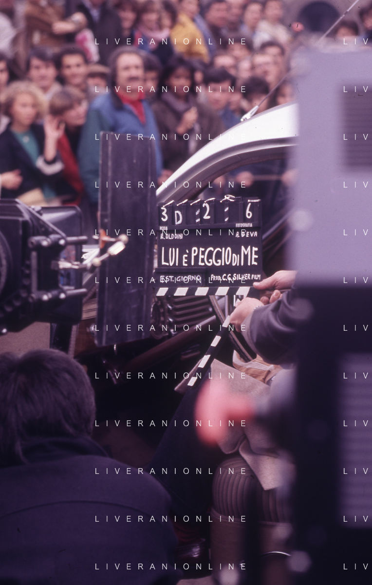 RETROSPETTIVA ADRIANO CELENTANO ATTORE CANTANTE NELLA FOTO ADRIANO CELENTANO NELL'ANNO 1984 A ROMA SUL SET DEL FILM “LUI E' PEGGIO DI ME“ CON RENATO POZZETTO AG ALDO LIVERANI SAS
