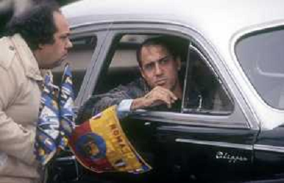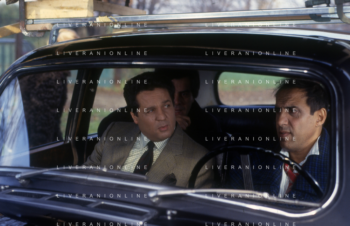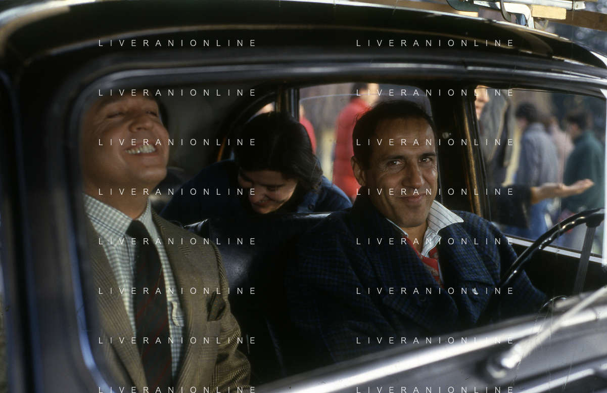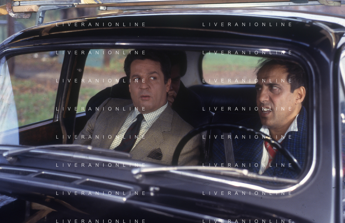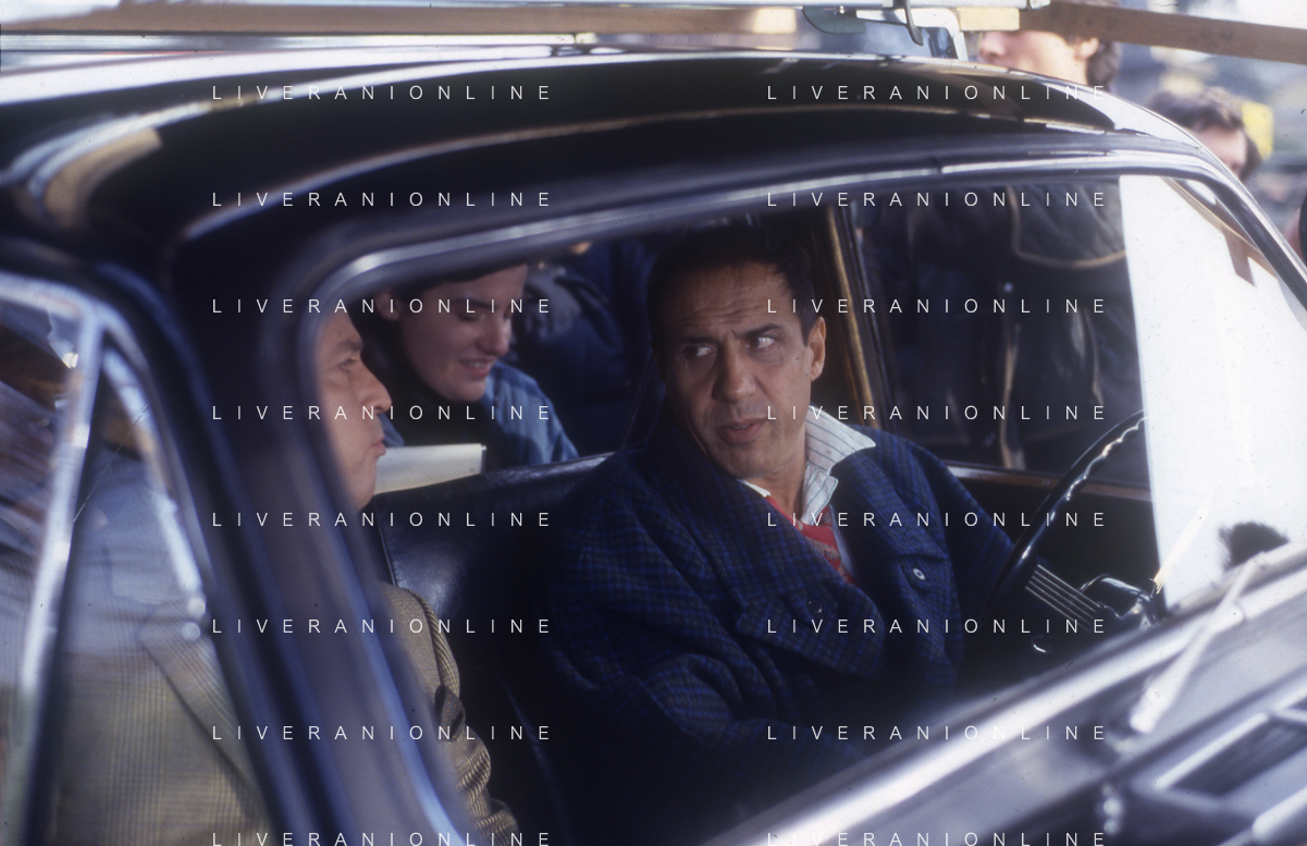 RETROSPETTIVA ADRIANO CELENTANO ATTORE CANTANTE NELLA FOTO ADRIANO CELENTANO NELL'ANNO 1984 A ROMA SUL SET DEL FILM “LUI E' PEGGIO DI ME“ CON RENATO POZZETTO AG ALDO LIVERANI SAS