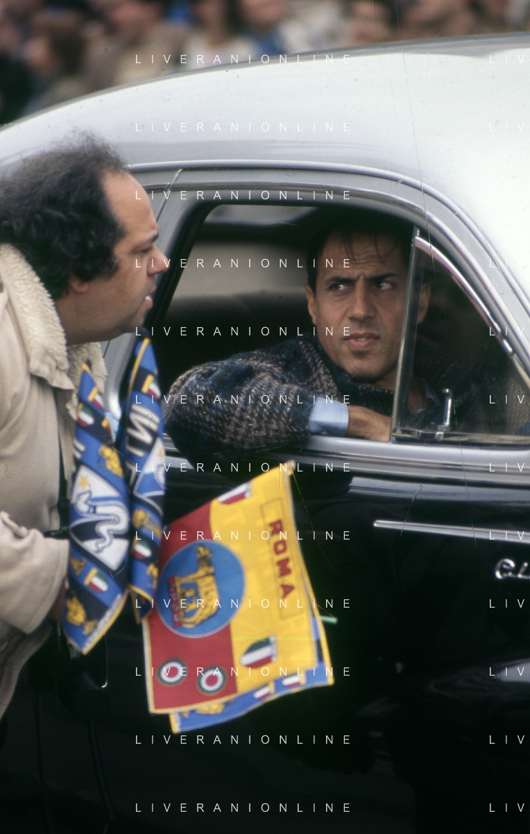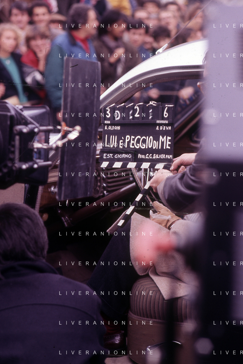RETROSPETTIVA ADRIANO CELENTANO ATTORE CANTANTE NELLA FOTO ADRIANO CELENTANO NELL'ANNO 1984 A ROMA SUL SET DEL FILM “LUI E' PEGGIO DI ME“ AG ALDO LIVERANI SAS