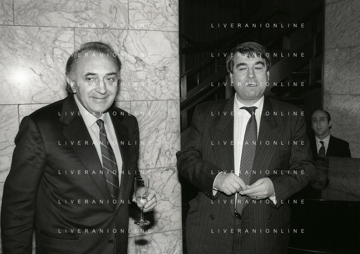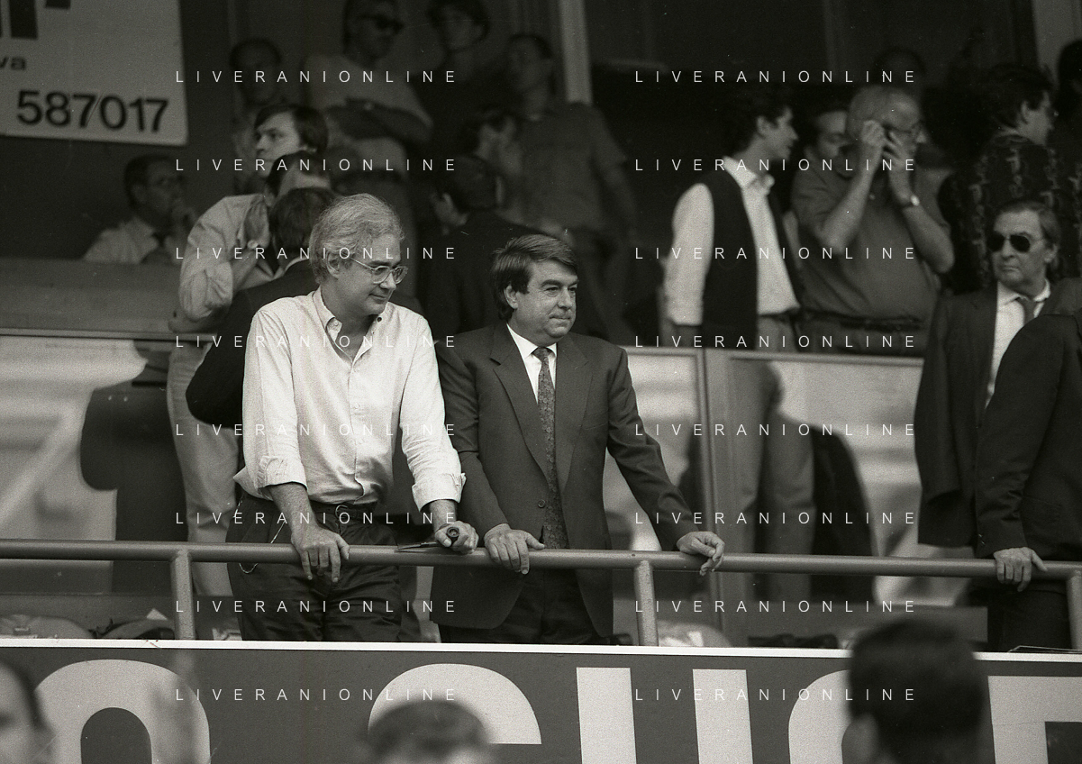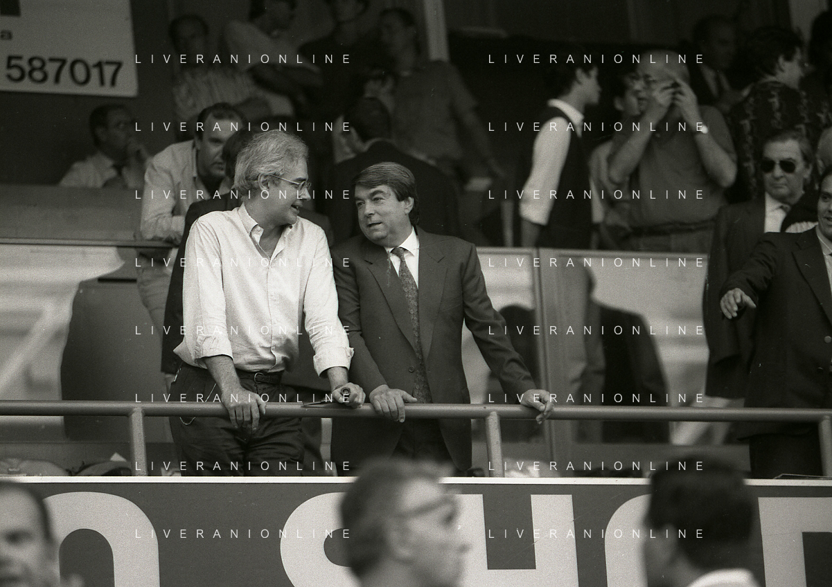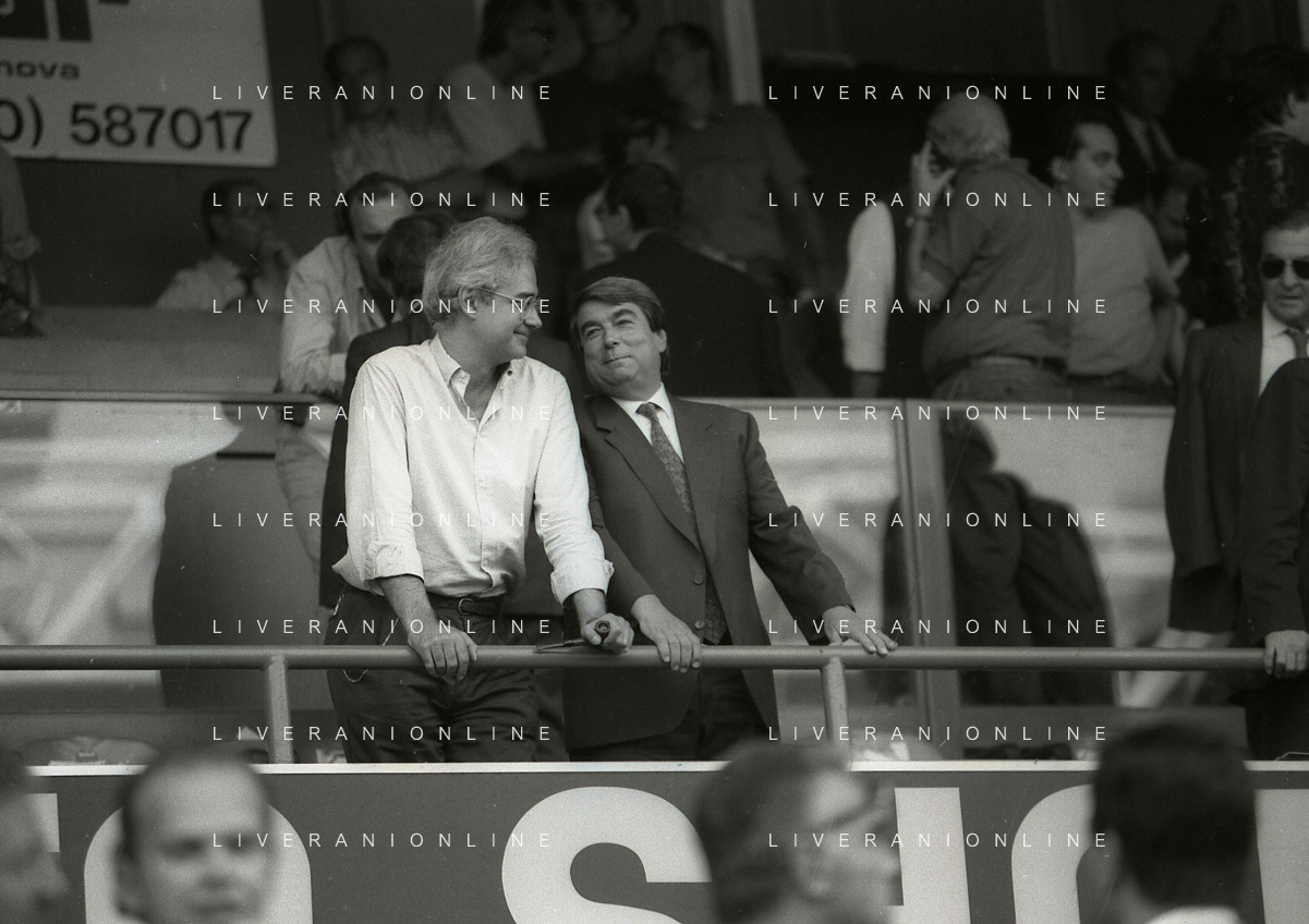 RETROSPETTIVA ALDO SPINELLI PRESIDENTE GENOA CALCIO NELLA FOTO ALDO SPINELLI PRESIDENTE GENOA CALCIO NELL'ANNO 1990 CON CORRADO FERLAINO AG ALDO LIVERANI SAS