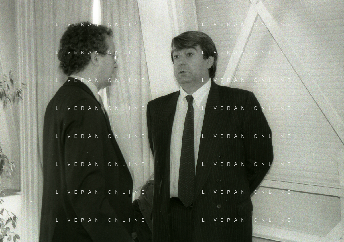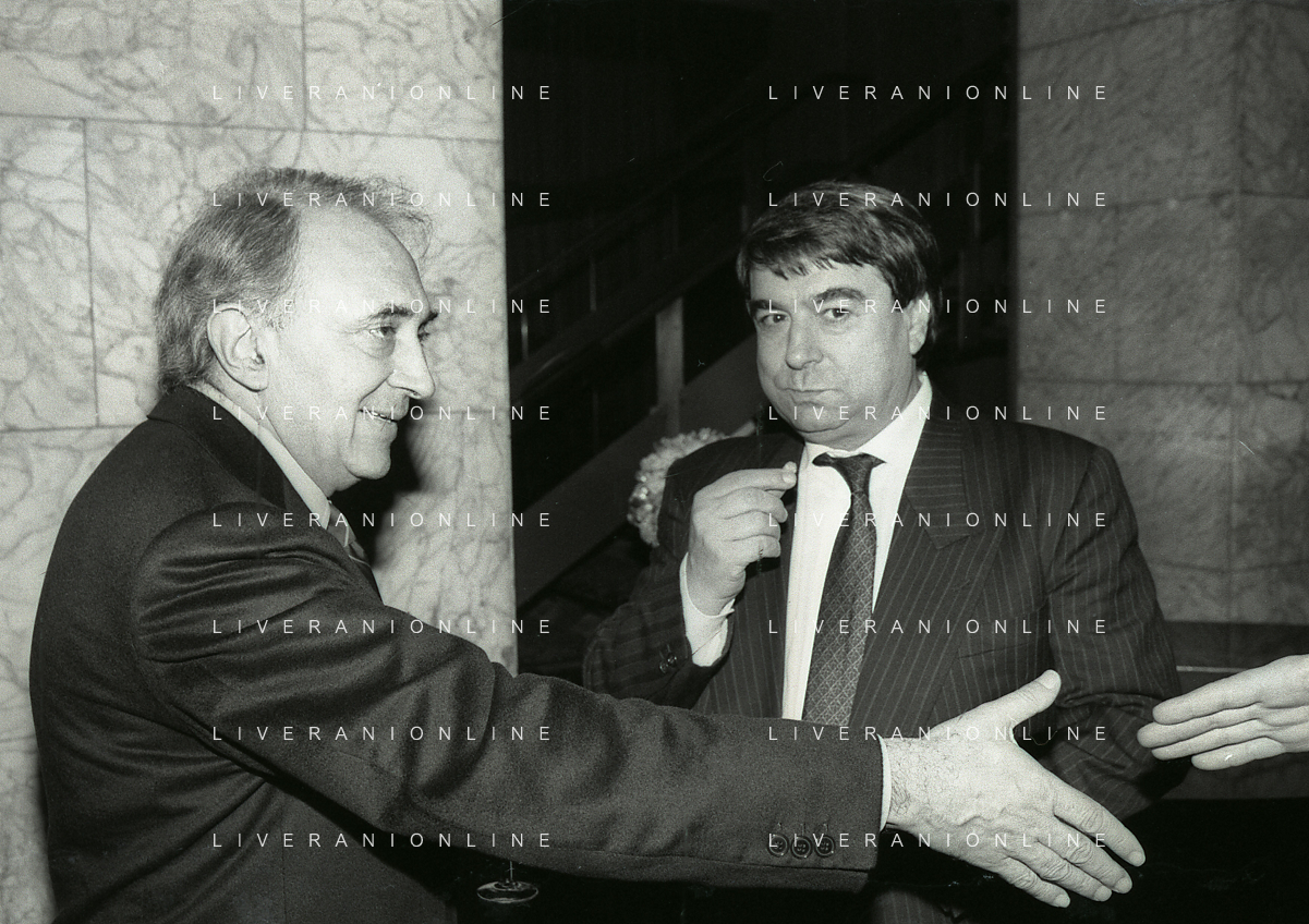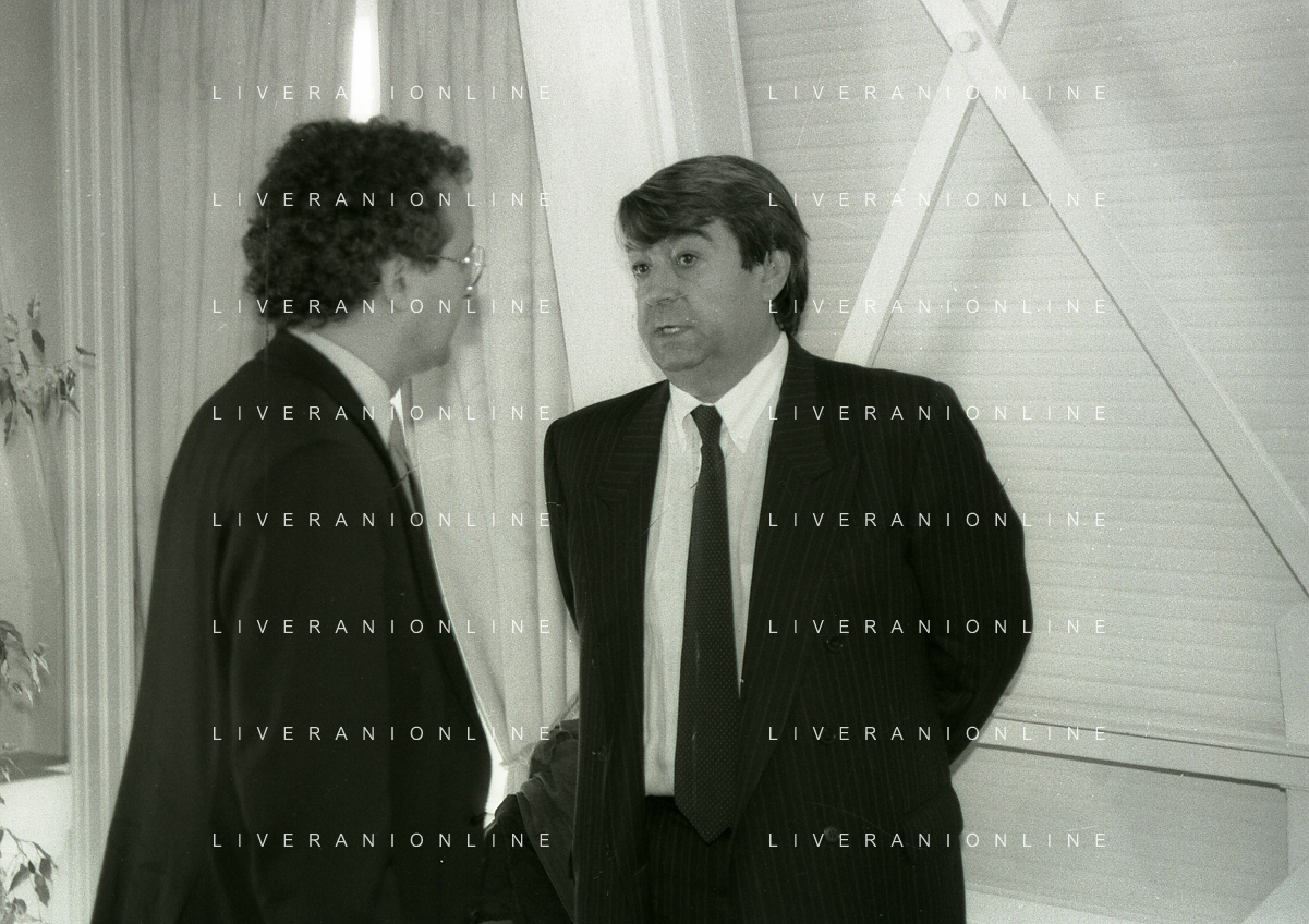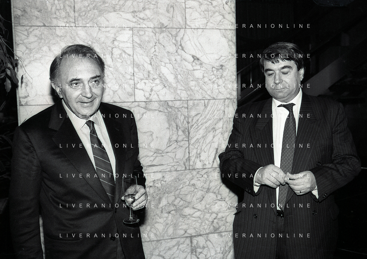 RETROSPETTIVA ALDO SPINELLI PRESIDENTE GENOA CALCIO NELLA FOTO ALDO SPINELLI PRESIDENTE GENOA CALCIO NELL'ANNO 1990 CON CORRADO FERLAINO AG ALDO LIVERANI SAS