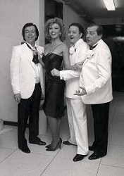 NEG-1984 MILANO TRASMISSIONE TELEVISIVA “ RISATISSIMA“ NELLA FOTO RICCARDO MINIGGIO CON GIAN FABIO BOSCO MASSIMO BOLDI E MILLY CARLUCCI AG ALDO LIVERANI SAS