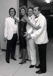 NEG-1984 MILANO TRASMISSIONE TELEVISIVA “ RISATISSIMA“ NELLA FOTO RICCARDO MINIGGIO CON GIAN FABIO BOSCO MASSIMO BOLDI E MIILLY CARLUCCI AG ALDO LIVERANI SAS