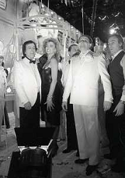 NEG-1984 MILANO TRASMISSIONE TELEVISIVA “ RISATISSIMA“ NELLA FOTO RICCARDO MINIGGIO CON GIAN FABIO BOSCO MASSIMO BOLDI E MILLY CARLUCCI AG ALDO LIVERANI SAS
