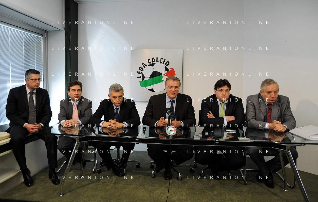 milano 30/4/2009 lega calcio via rosellini nella foto LUCA BENEDETTINI (presidente rimini), MAURIZIO RICCARDI ( a.d. piacenza) , MAURIZIO STIRPE (presidente frosinone) , GIANFRANCO ANDREOLETTI (presidente albinoleffe e vicepresidente lega calcio B), STEFANO FANTINEL ( presidente triestina) , e PIETRO CAMILLI (presidente grosseto ) foto romano/ag aldo liverani