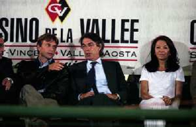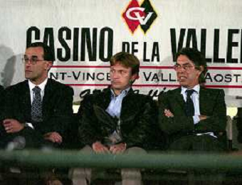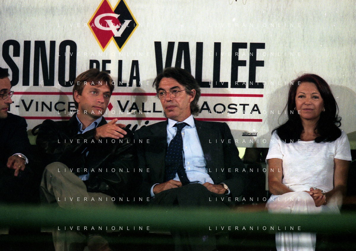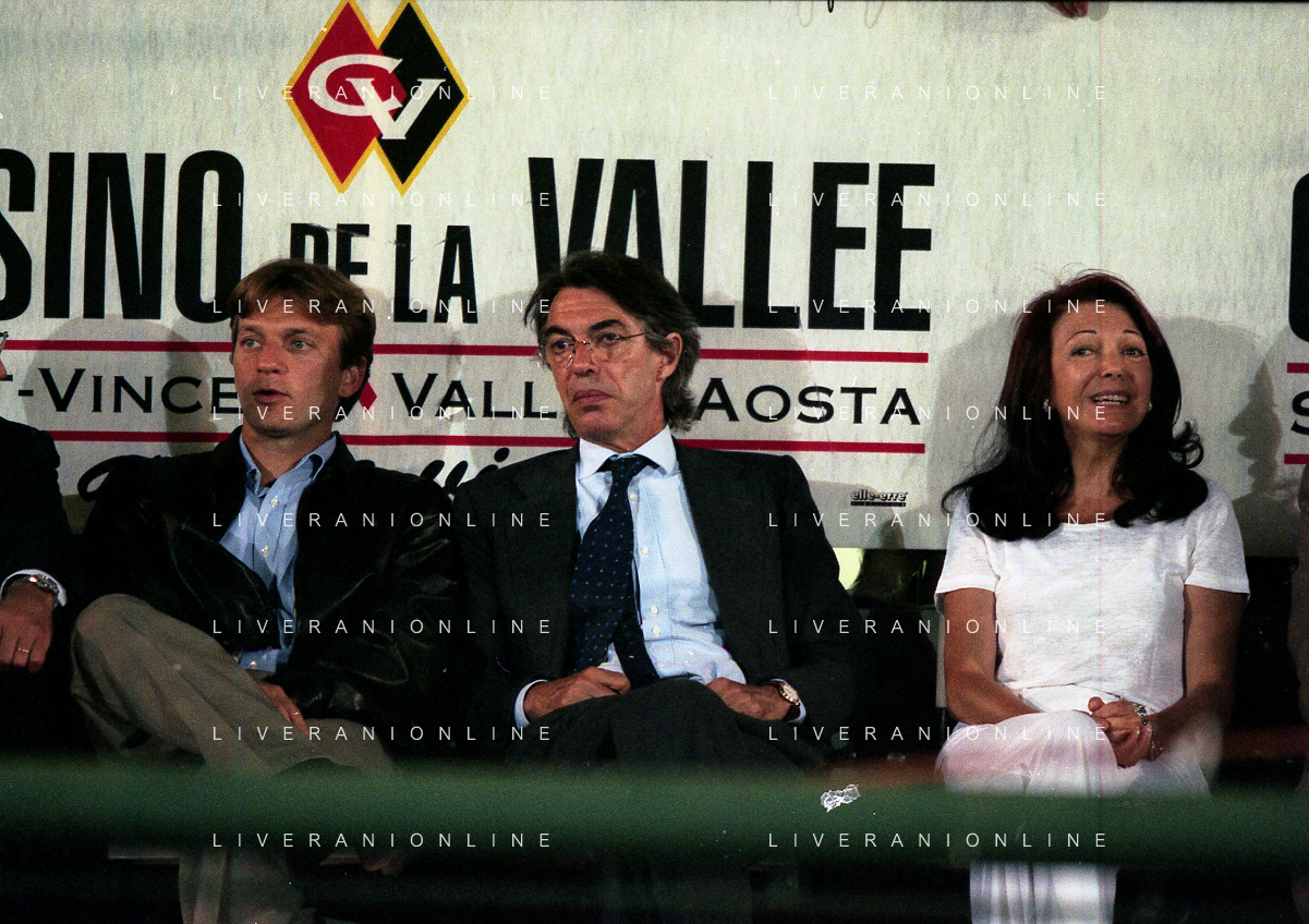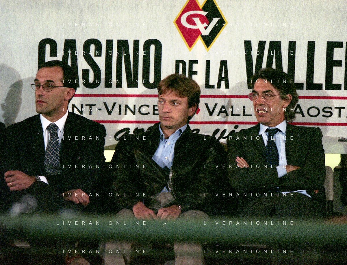 NEG-RETROSPETTIVA STEFANO TANZI PRESIDENTE PARMA CALCIO NELLA FOTO STEFANO TANZI CON MASSIMO MORATTI E BEDY MORATTI AD AOSTA NELL'ANNO 1996-1997 AG ALDO LIVERANI SAS