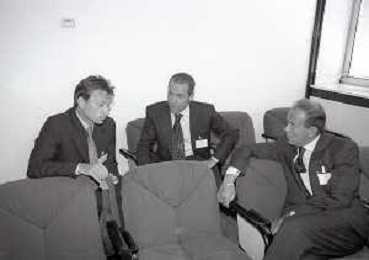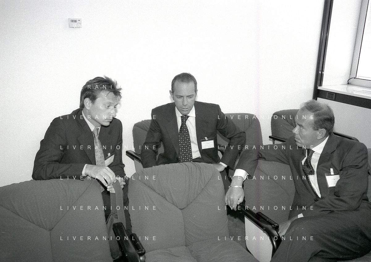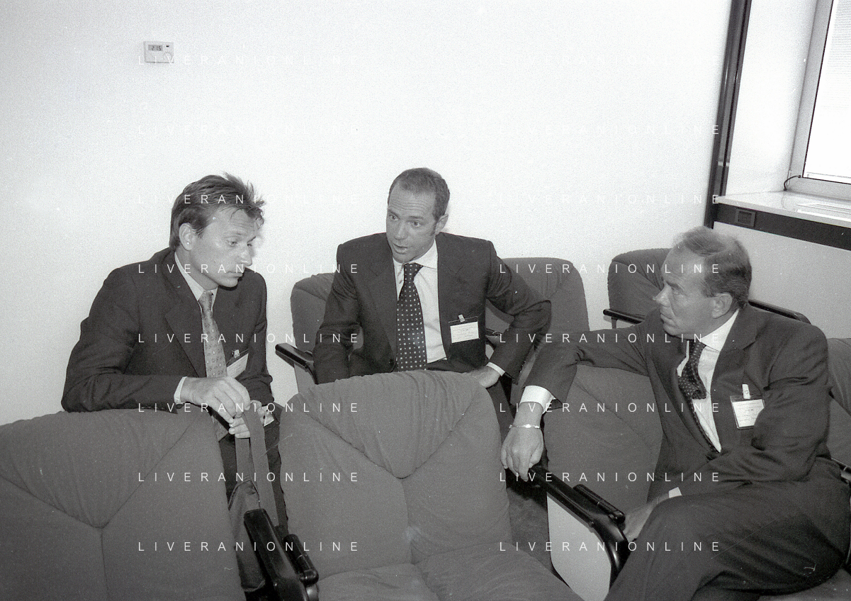 NEG-RETROSPETTIVA STEFANO TANZI PRESIDENTE PARMA CALCIO NELLA FOTO STEFANO TANZI CON ENRICO MANTOVANI E FULVIO CERESINI NELL'ANNO 1996-1997 AG ALDO LIVERANI SAS
