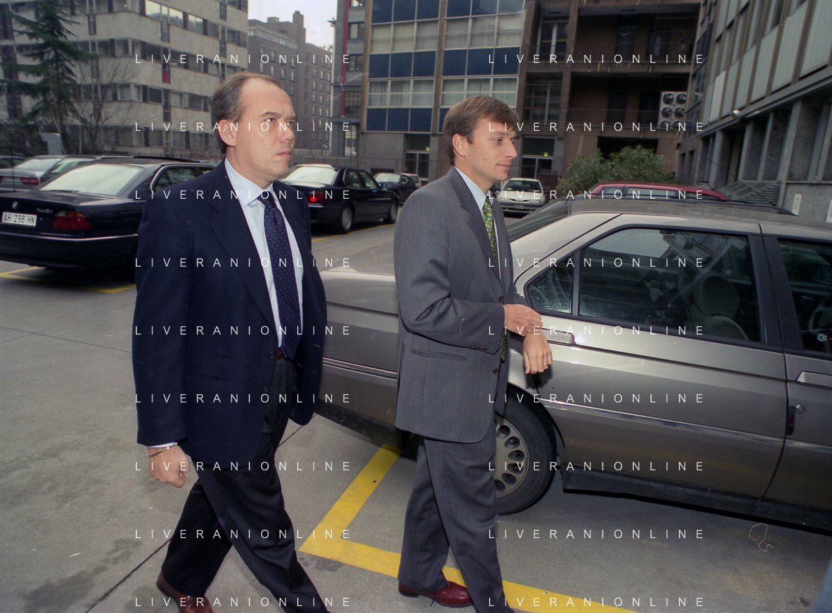 NEG-RETROSPETTIVA STEFANO TANZI PRESIDENTE PARMA CALCIO NELLA FOTO STEFANO TANZI CON FULVIO CERESINI NELL'ANNO 1996-1997 A MILANO IN LEGA CALCIO AG ALDO LIVERANI SAS
