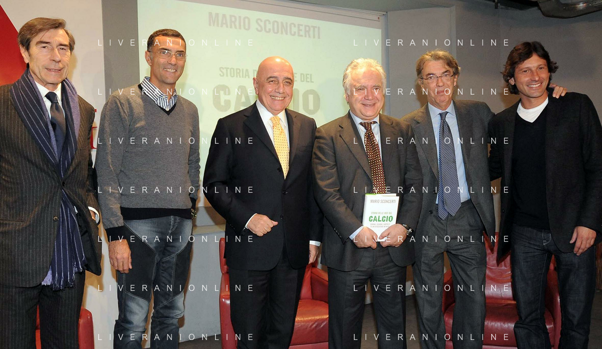 MILANO 11/11/2009 MONDADORI MULTICENTER VIA MARGHERA, 28 PRESENTAZIONE DEL LIBRO DI MARIO SCONCERTI: 'STORIA DELLE IDEE DEL CALCIO' NELLA FOTO ARIEDO BRAIDA, BEPPE BERGOMI, ADRIANO GALLIANI, MARIO SCONCERTI, MASSIMO MORATTI E LEONARDO FOTO ROMANO/AG ALDO LIVERANI