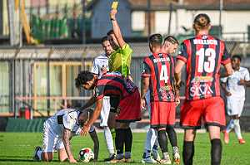 FagioliniF/LMedia - Lucchese vs Cesena - Campionato di Calcio Serie C - Lega Pro 2021/2022 05 settembre 2021 - Stadio Porta Elisa, Lucca, Italia Nella foto: Arbitro Sig. Alberto Ruben Arena ammonisce Cosimo Nannini (Lucchese) @FagioliniF/LMedia/AGENZIA ALDO LIVERANI SAS