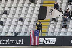 Cesena - Olbia Campionato di calcio Serie C girone B 30/01/2022 nella foto: tifoso del cesena con la bandiera americana e della squadra del cesena ©Claudio Zamagni/Agenzia Aldo Liverani /AGENZIA ALDO LIVERANI SAS