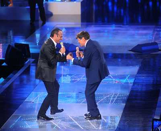 ROMA - STUDIOS VIA TIBURTINA 11.12.09 TRASMISSIONE I MIGLIORI ANNI PUNTATA DEL 11.12.09 nella foto: GIANNI MORANDI - CARLO CONTI