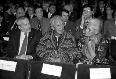 RETROSPETTIVA OTTAVIO MISSONI STILISTA NELLA FOTO CON GIORGIO ARMANI E KRIZIA, MARIUCCIA MANDELLI ©Archivio Giovanni Liverani/AGENZIA ALDO LIVERANI SAS
