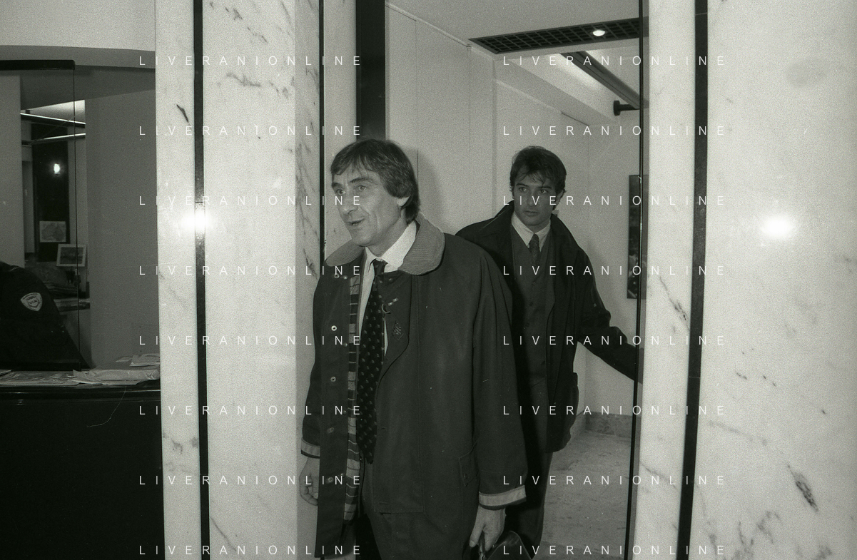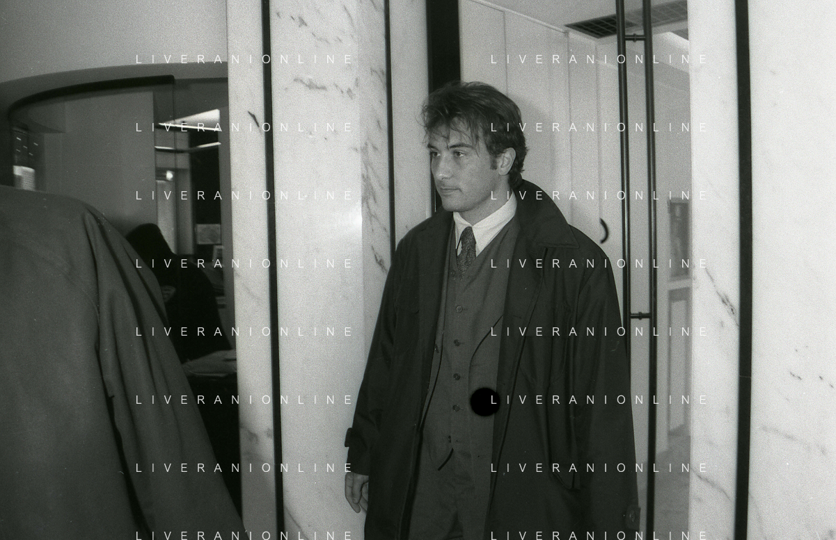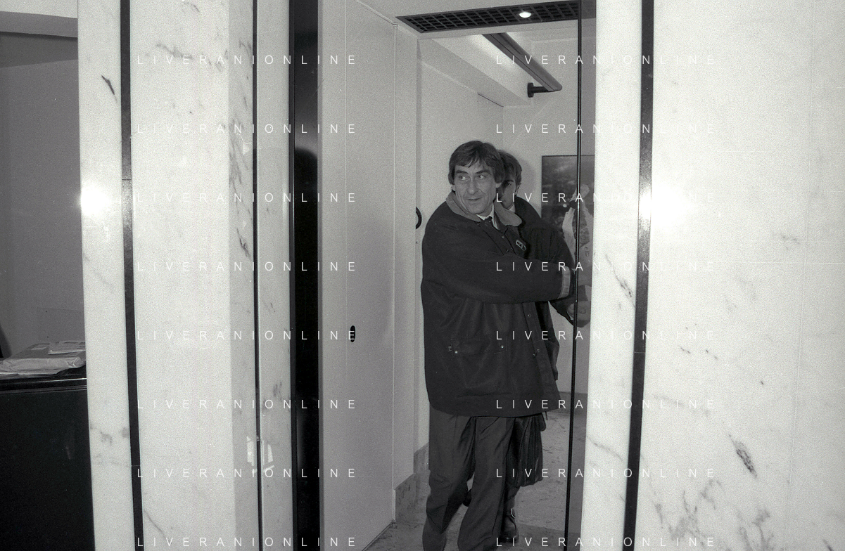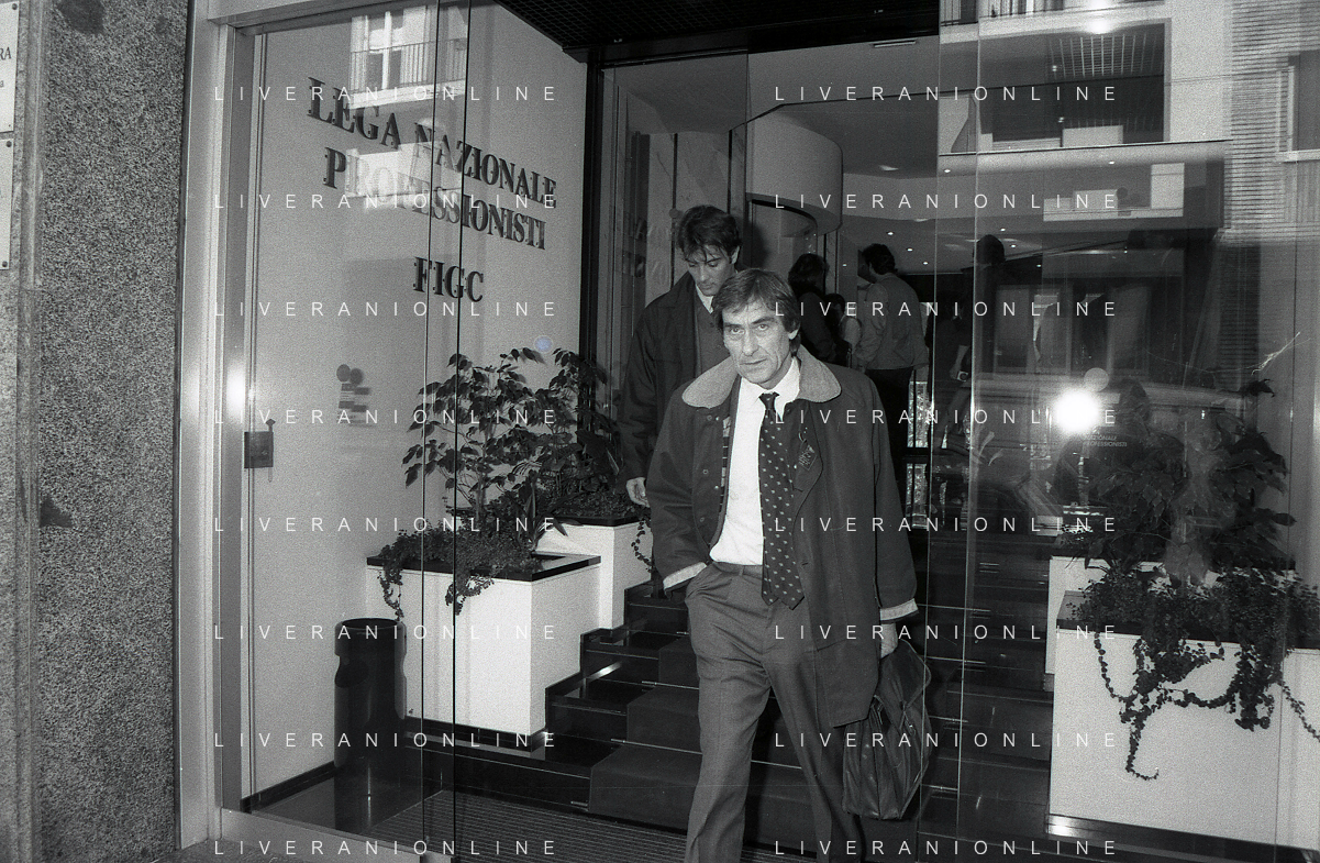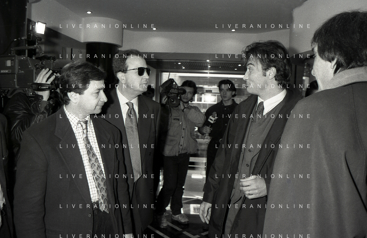 1995 MILANO LEGA CALCIO VIA ROSSELLINI NELLA FOTO FELICE PULICI E IL CALCIATORE PIERLUIGI CASIRAGHI IN LEGA PER RICORSO SQUALIFICA CON I GIORNALISTI FRANCO ORDINE E ANTONELLO CAPONE AG ALDO LIVERANI SAS
