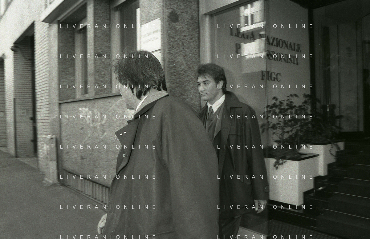 1995 MILANO LEGA CALCIO VIA ROSSELLINI NELLA FOTO FELICE PULICI E IL CALCIATORE PIERLUIGI CASIRAGHI IN LEGA PER RICORSO SQUALIFICA AG ALDO LIVERANI SAS