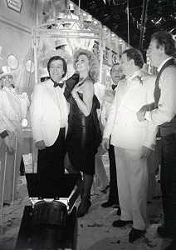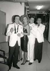 NEG-1984 MILANO TRASMISSIONE TELEVISIVA “ RISATISSIMA“ NELLA FOTO RICCARDO MINIGGIO CON GIAN FABIO BOSCO MASSIMO BOLDI E MILLY CARLUCCI AG ALDO LIVERANI SAS