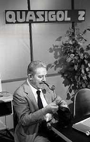 NELLA FOTO GIANNI BRERA A MILANO NELL'ANNO 1983 NELLA TRASMISSIONE TELEVIDIVA “QUASI GOL“