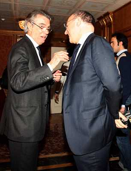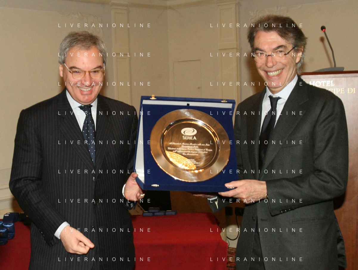 MILANO 13-12-2010 HOTEL PRINCIPE DI SAVOIA CALCIO LEGA CALCIO PREMIAZIONI ANNO CALCISTICO SERIE A TIM 2009-2010 NELLA FOTO MASSIMO MORATTI MAURIZIO BERETTA PH.FIOCHI/AG ALDO LIVERANI SAS