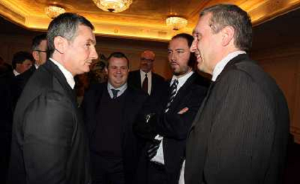 MILANO 13-12-2010 HOTEL PRINCIPE DI SAVOIA CALCIO LEGA CALCIO PREMIAZIONI ANNO CALCISTICO SERIE A TIM 2009-2010 NELLA FOTO MICHETALE BRIAMONTE ANDREA AGNELLI BEPPE MAROT PH.FIOCHI/AG ALDO LIVERANI SAS